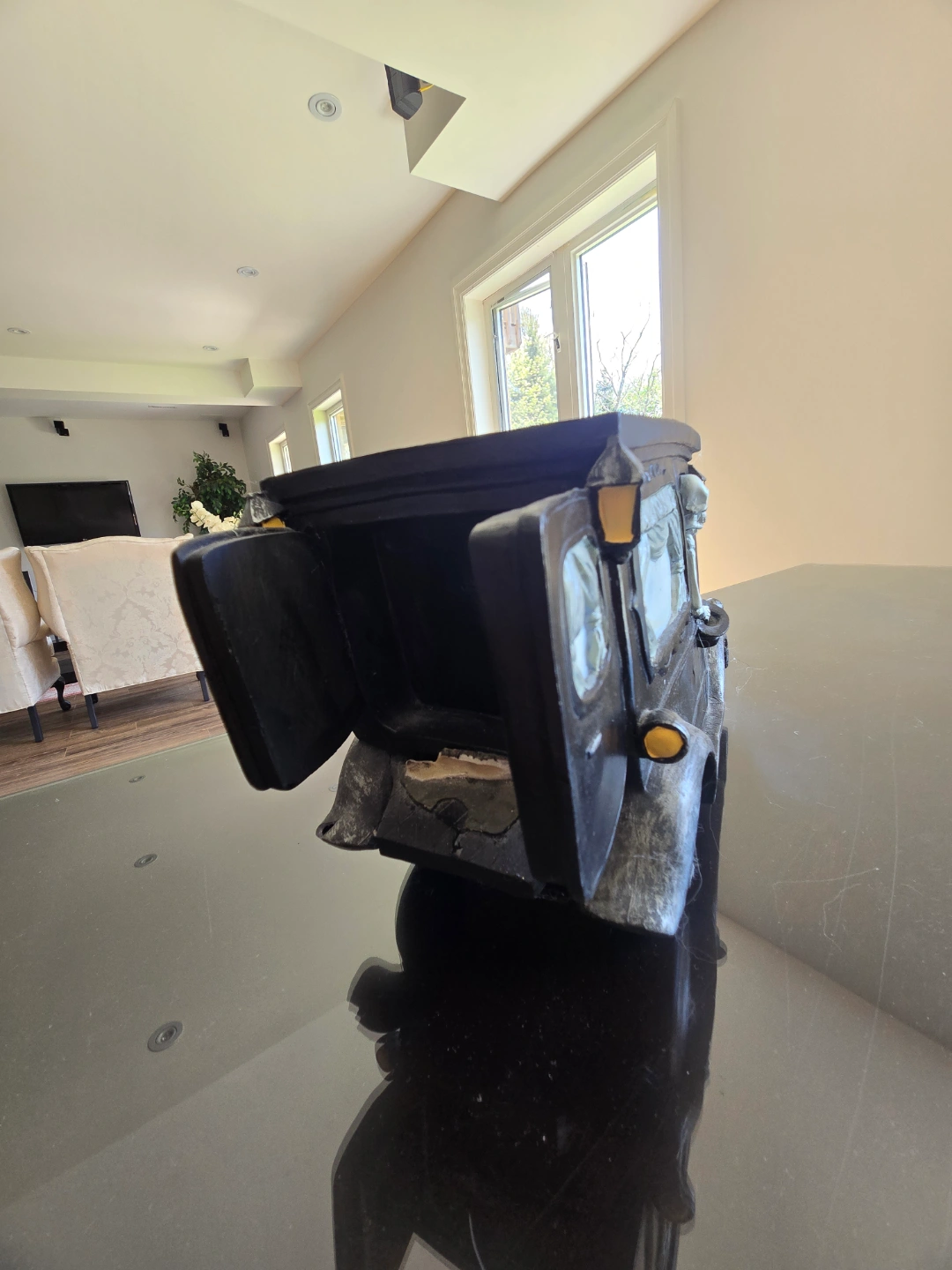 Haloween Spooky figurine. Black hearse with skeleton driver. Great Halloween decoration. Small size, perfect for a shelf or desk.