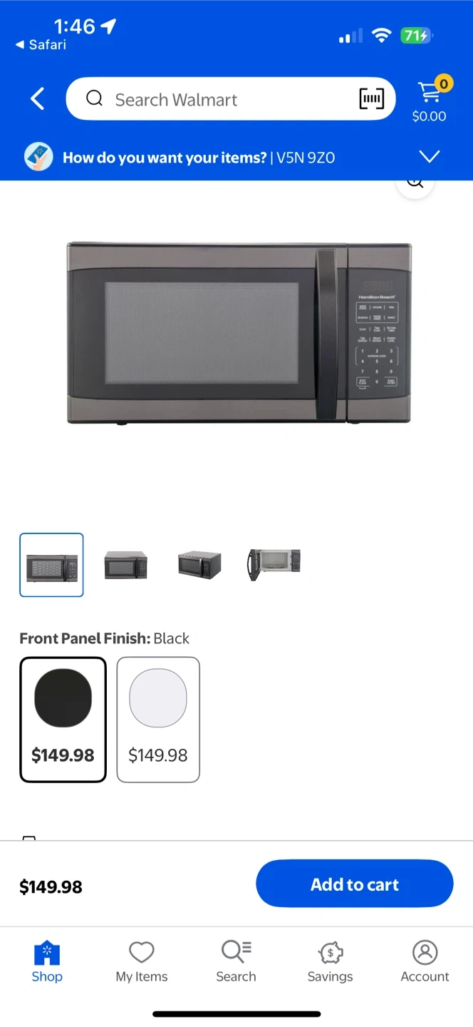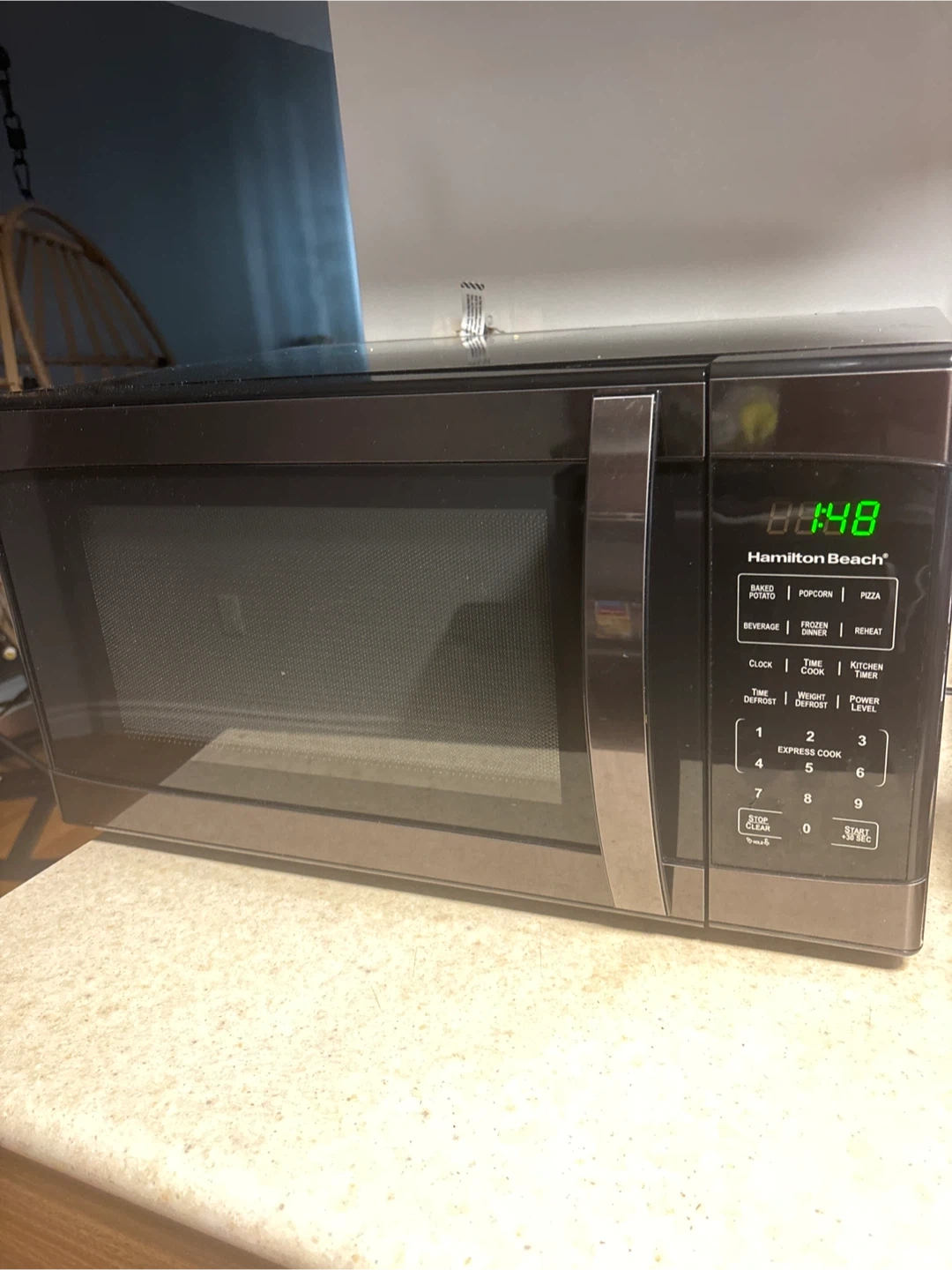 Selling a Hamilton Beach microwave with a black front panel finish. It's in great condition, no longer needing a microwave. Bought originally for $150