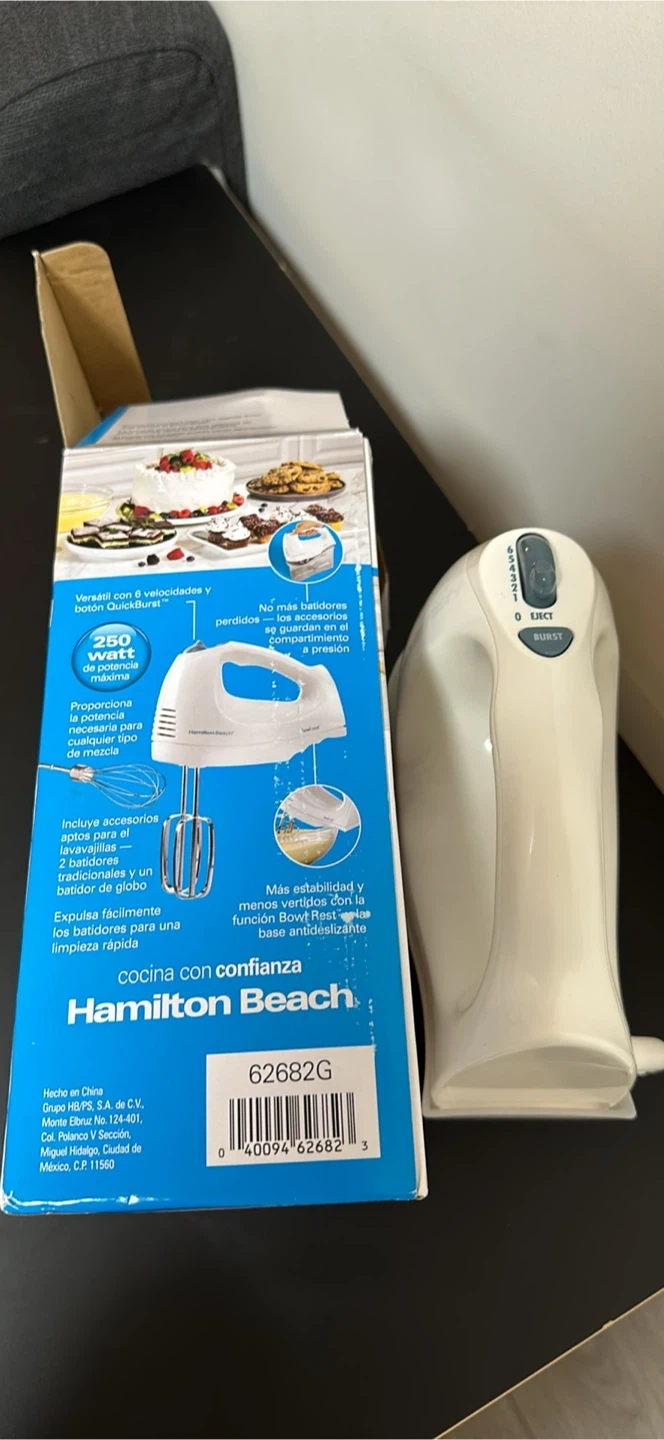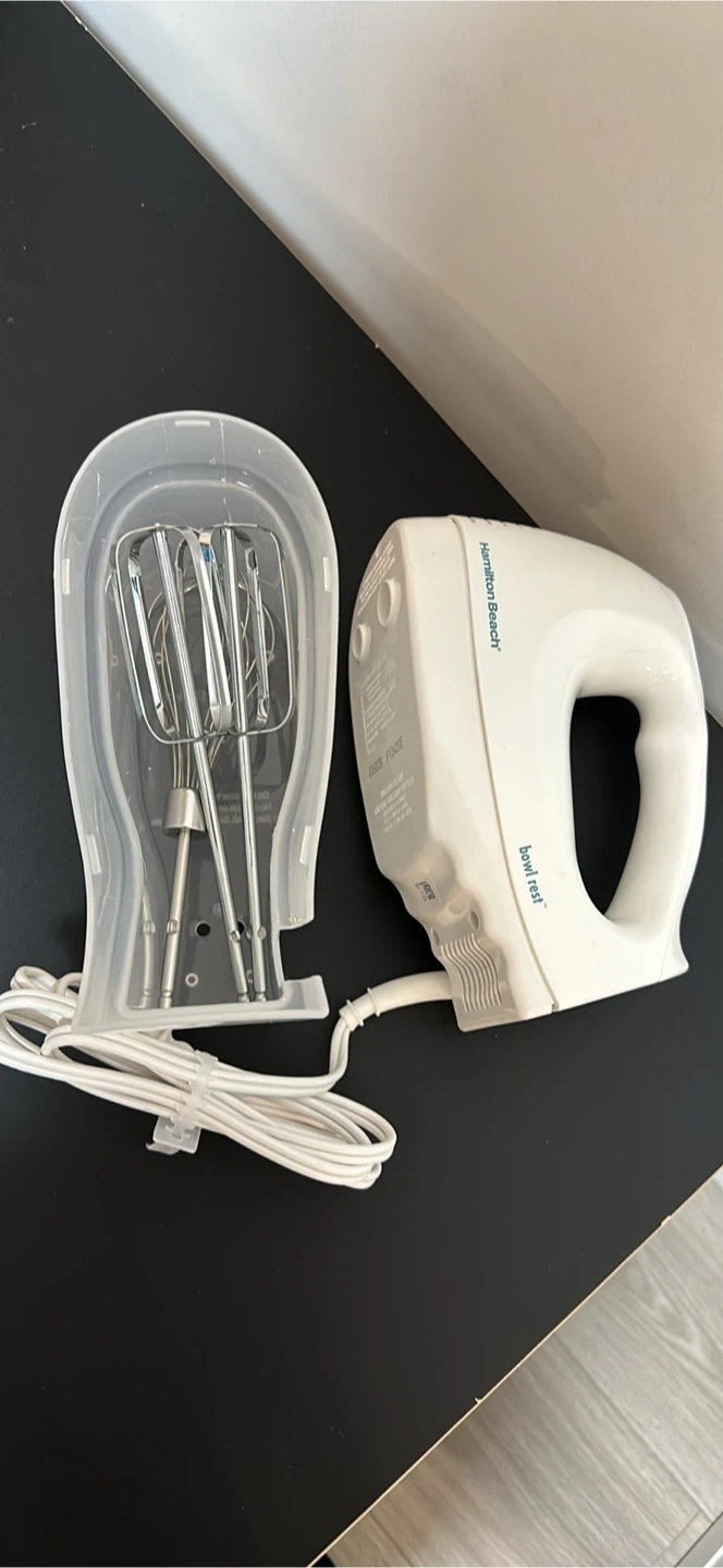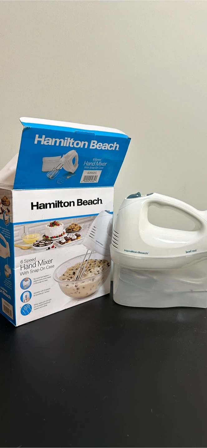 Selling a Hamilton Beach Bowl Rest hand mixer, model 62682G. It features 6 speeds and a QuickBurst button for that extra power when you need it! The mixer comes with a snap-on case for easy storage. The box is included!