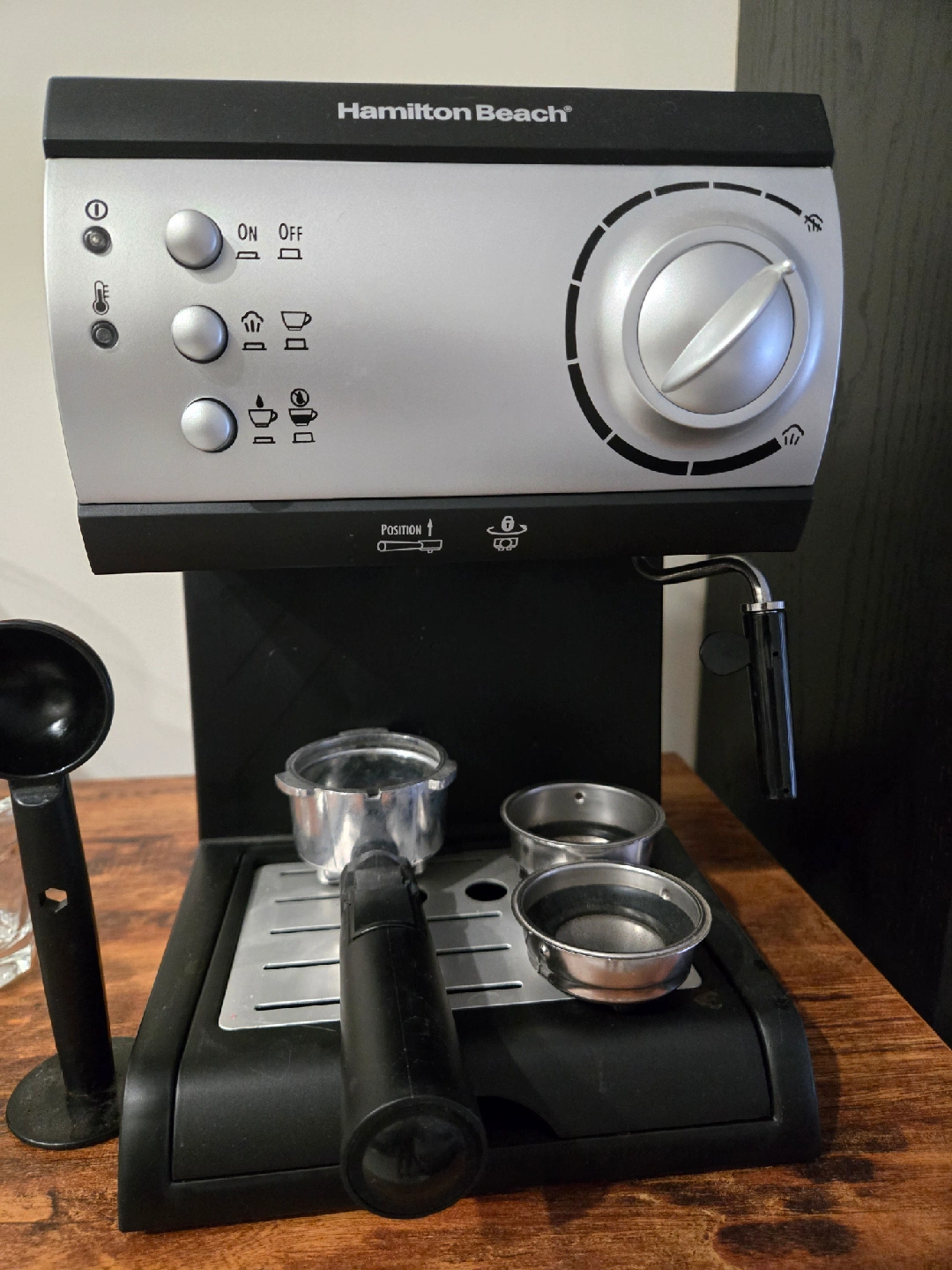 Manual Hamilton Beach espresso machine , comes with all parts. Works perfectly, selling because I don't use it.