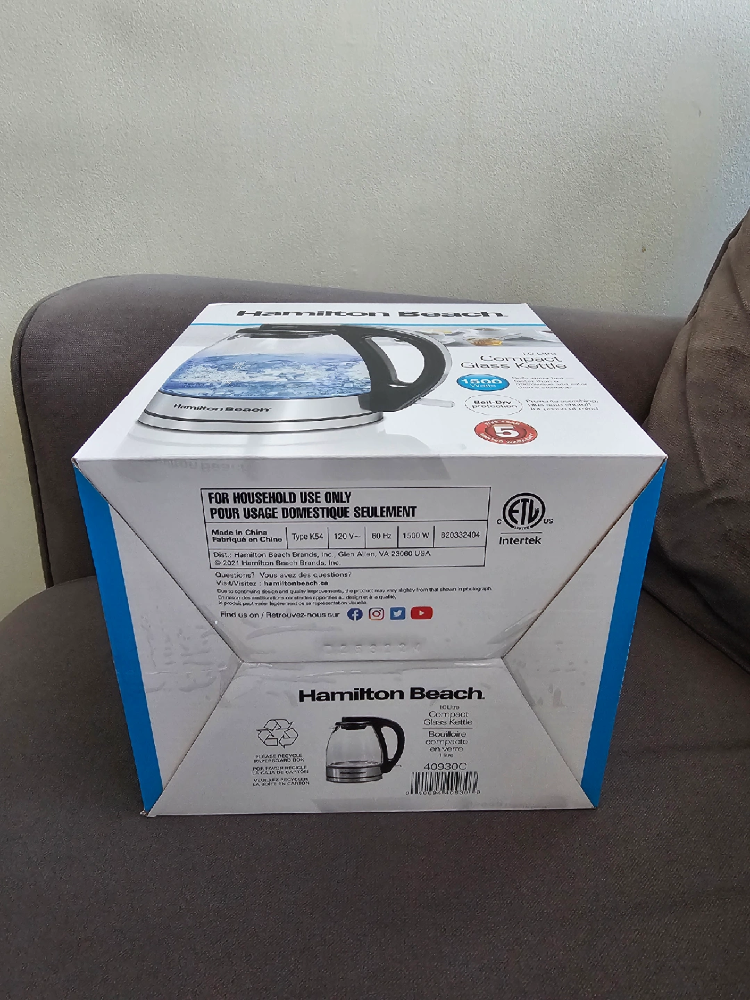 Show allHamilton Beach Glass Electric Tea Kettle, 1 L, 1500 Watts π₯