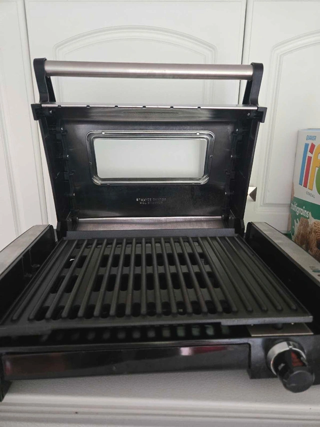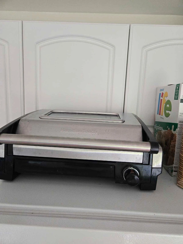 Get ready to grill indoors with this Hamilton Beach grill, perfect for small spaces. It's in used condition but still has plenty of life left to cook up delicious meals! It features nonstick grill plates and a floating hinge that accommodates thicker foods.