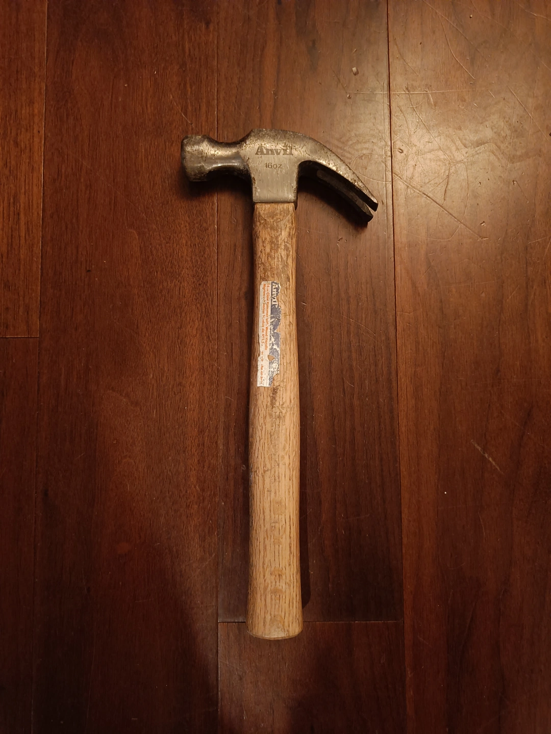 Anvil 16oz Hammer. Features a wooden handle construction. Hammer is in great condition bar the normal wear and tear signs you'd expect with a hammer. The wooden handle is very comfortable to hold and use. The hammer itself is light but still packs plenty of punch making it a great choice for repetitive use daily. Reason for sale is that I no longer work in the industry so longer require this tool.