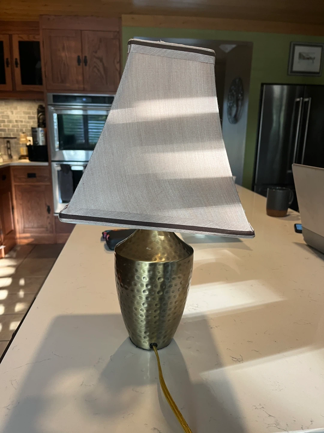 Here's a stylish table lamp with a hammered metal base. It would look great in any room!