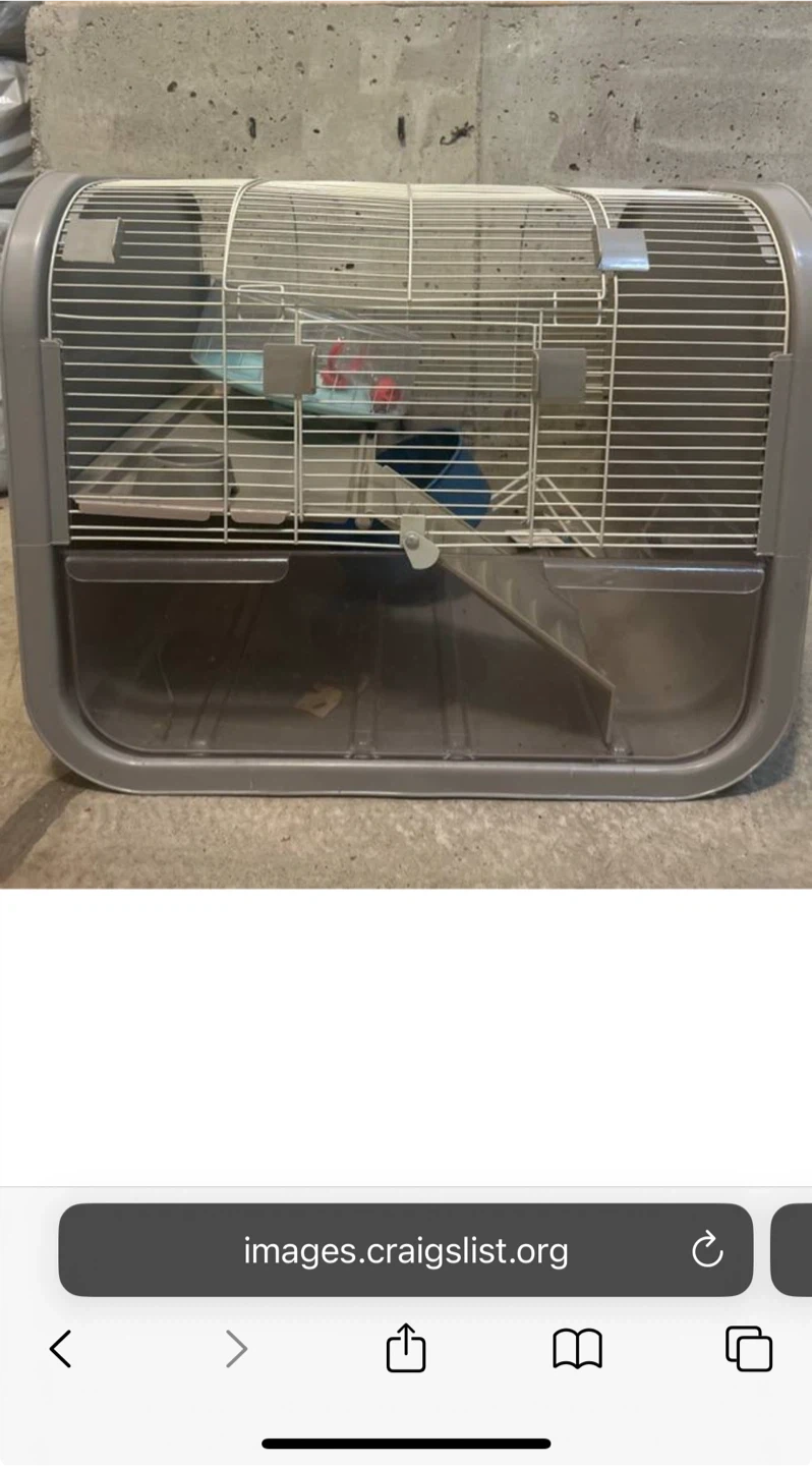 Selling a hamster cage in good condition. It's a great home for your little friend! Includes a built-in food dish and water bottle holder. Paid over $300. Includes silent wheel $40 retail.