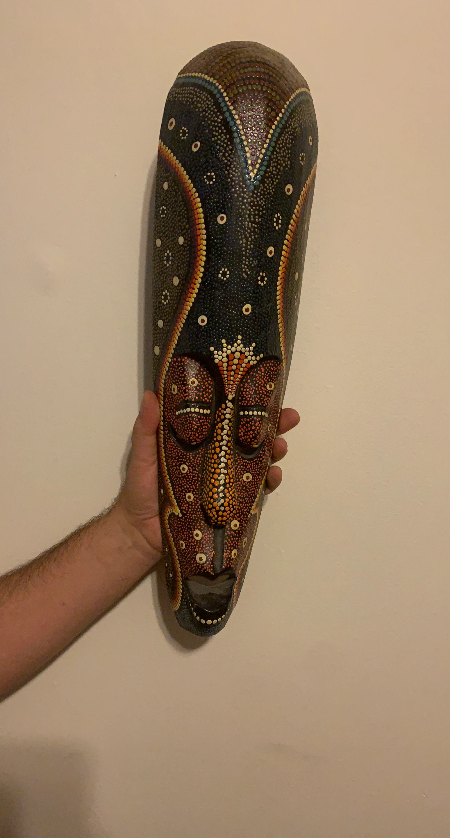 Unique hand carved African mask with intricate dot painting. A great addition to any collection or as a unique piece of home decor