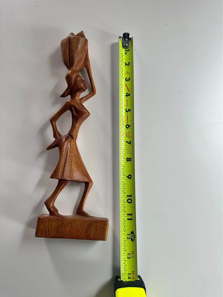 This beautifully carved wooden figure captures the elegance and resilience of a woman carrying tradition—literally—on her head. Hand-carved from warm-toned hardwood, this 12-inch statue features: • A minimalist, stylized silhouette • Classic East African design motifs • Symbol of strength, grace, and cultural heritage • Perfect for collectors, Afrocentric decor, or anyone tired of mass-produced soulless shelf junk Display it solo or with other global folk art pieces to tell a richer story. $5 OBO