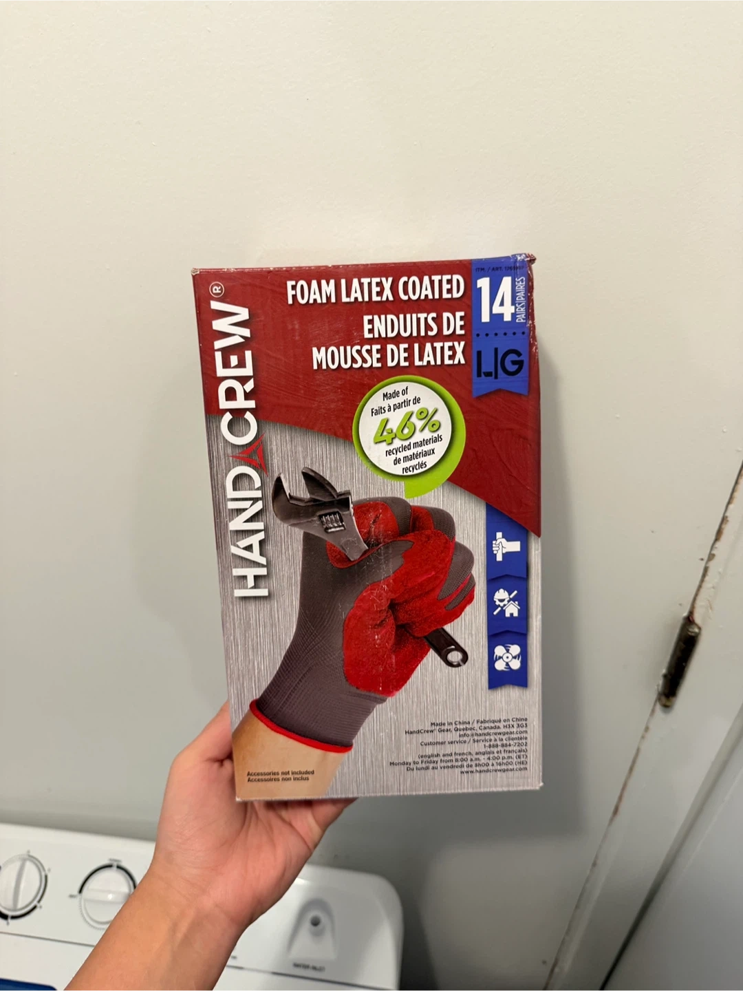 Get a grip with these Hand Crew foam latex coated gloves! They come in size 14/Large. The gloves are made with 46% recycled materials. Great for any job that requires a non-slip grip! Pick up in Gloucester