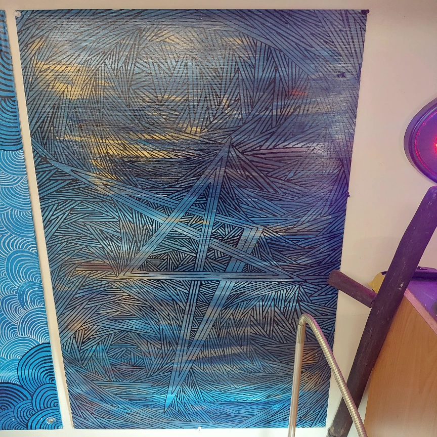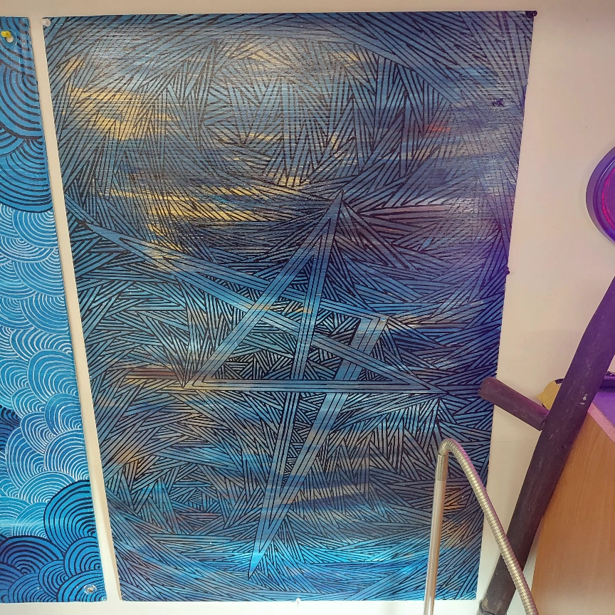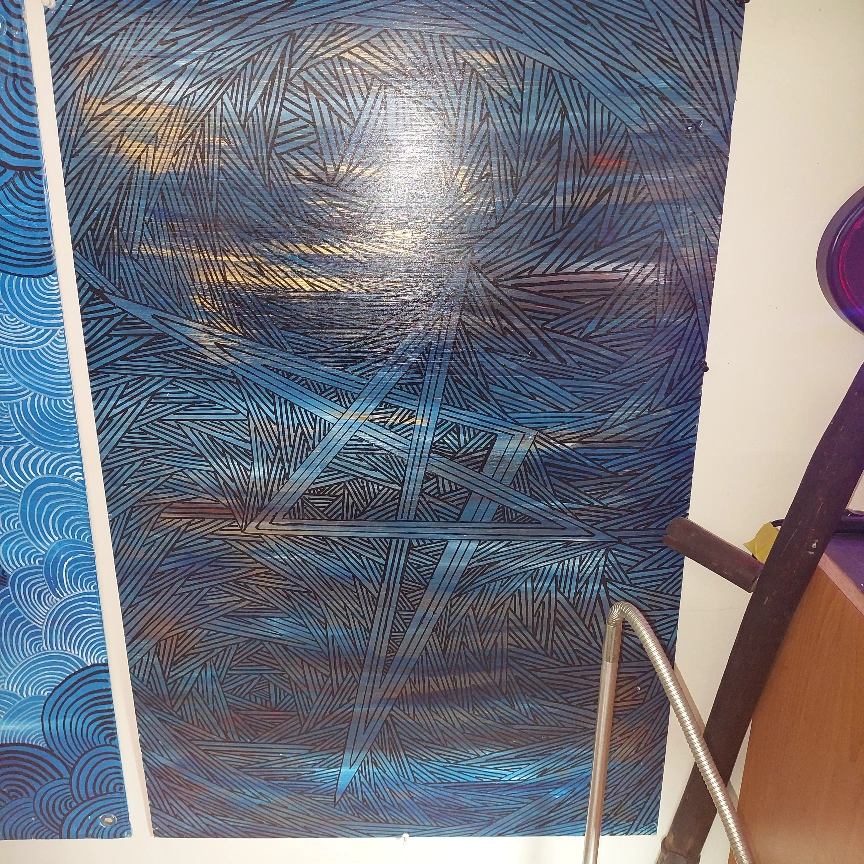 I did a 4 by 2 feet abstract painting on a plastic canvas. no rulers all free hand. open to offers