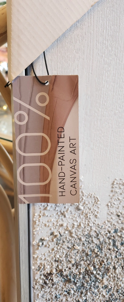 100% hand-painted canvas art. Features a textured, abstract design in shades of blue, white and brown.Size 25"×12" . 61cm x30cm.