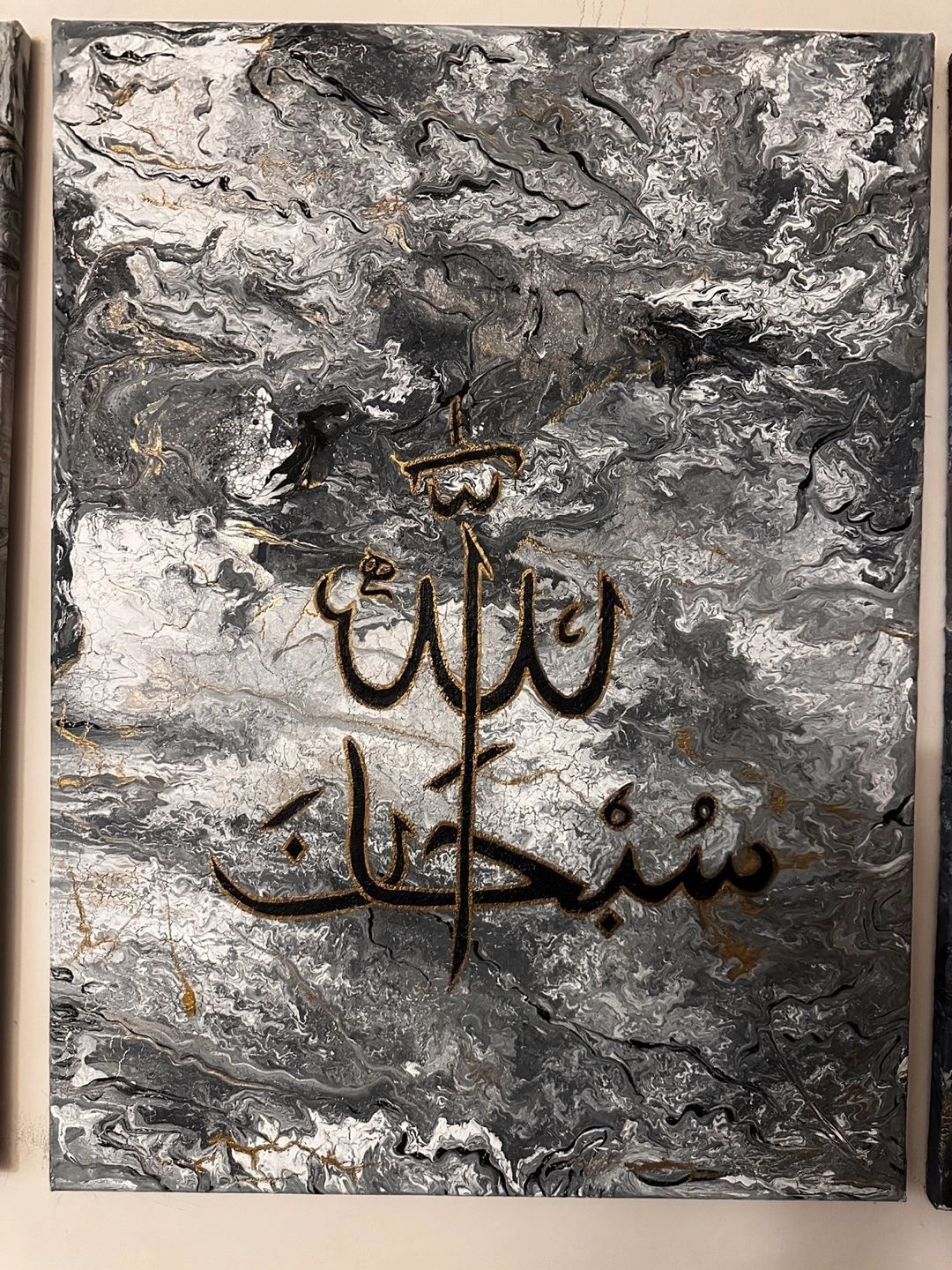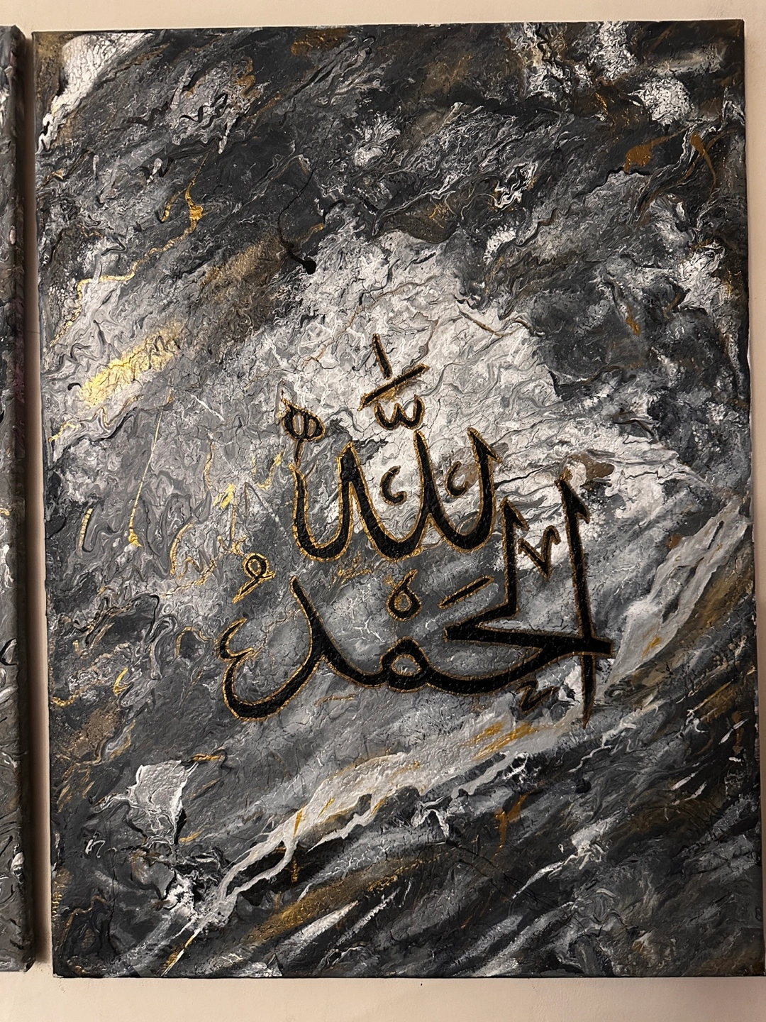 Selling a set of 3 Islamic calligraphy hand painted art pieces. They feature beautiful Arabic writing on a textured background. Great for adding a unique touch to your home decor! size: length 60cm, width 46cm each piece $40, take all 3pcs together $100 Pick up only.