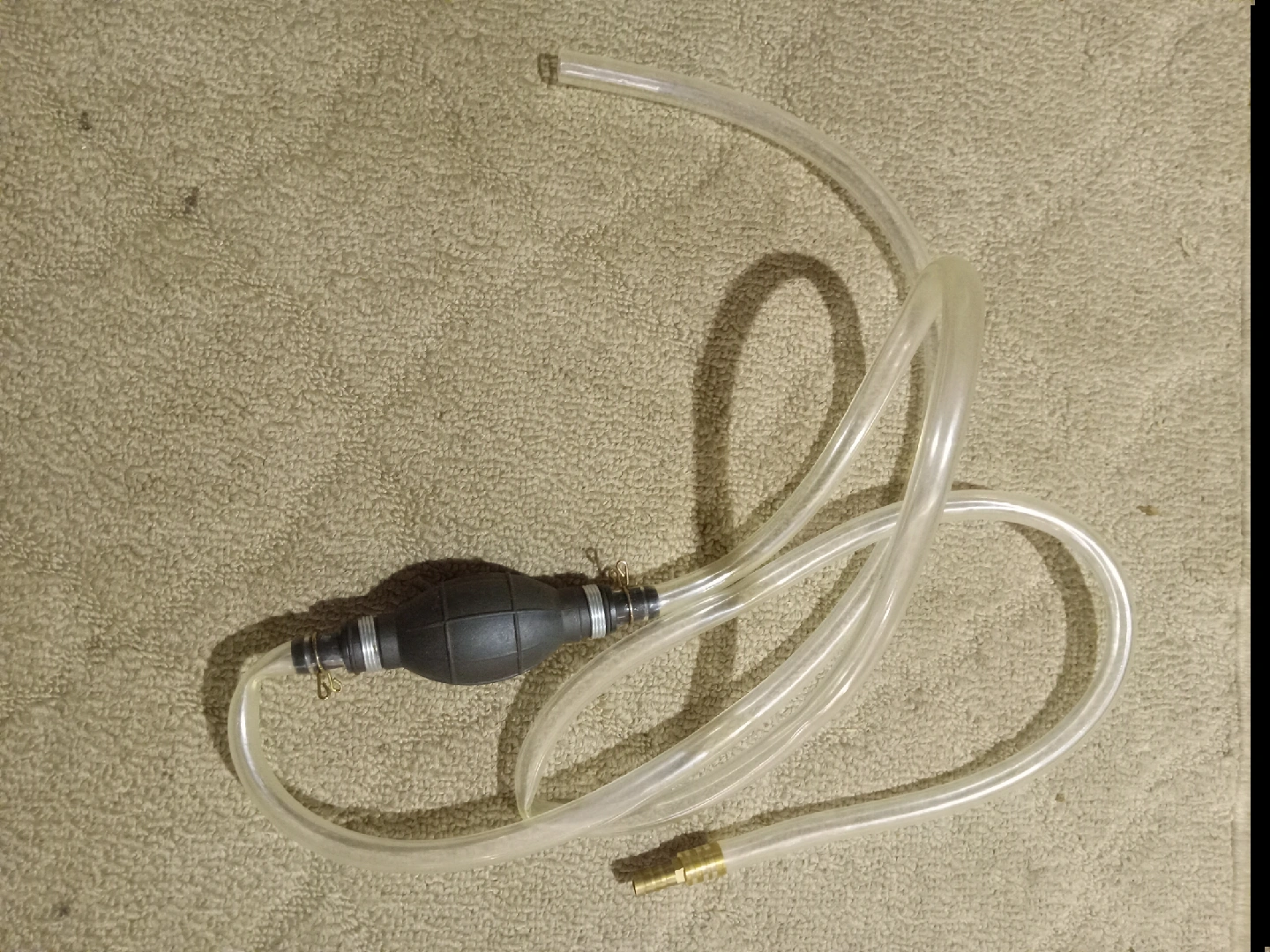 Hand siphon pump with clear tubing, perfect for transferring liquids. Great for various uses!