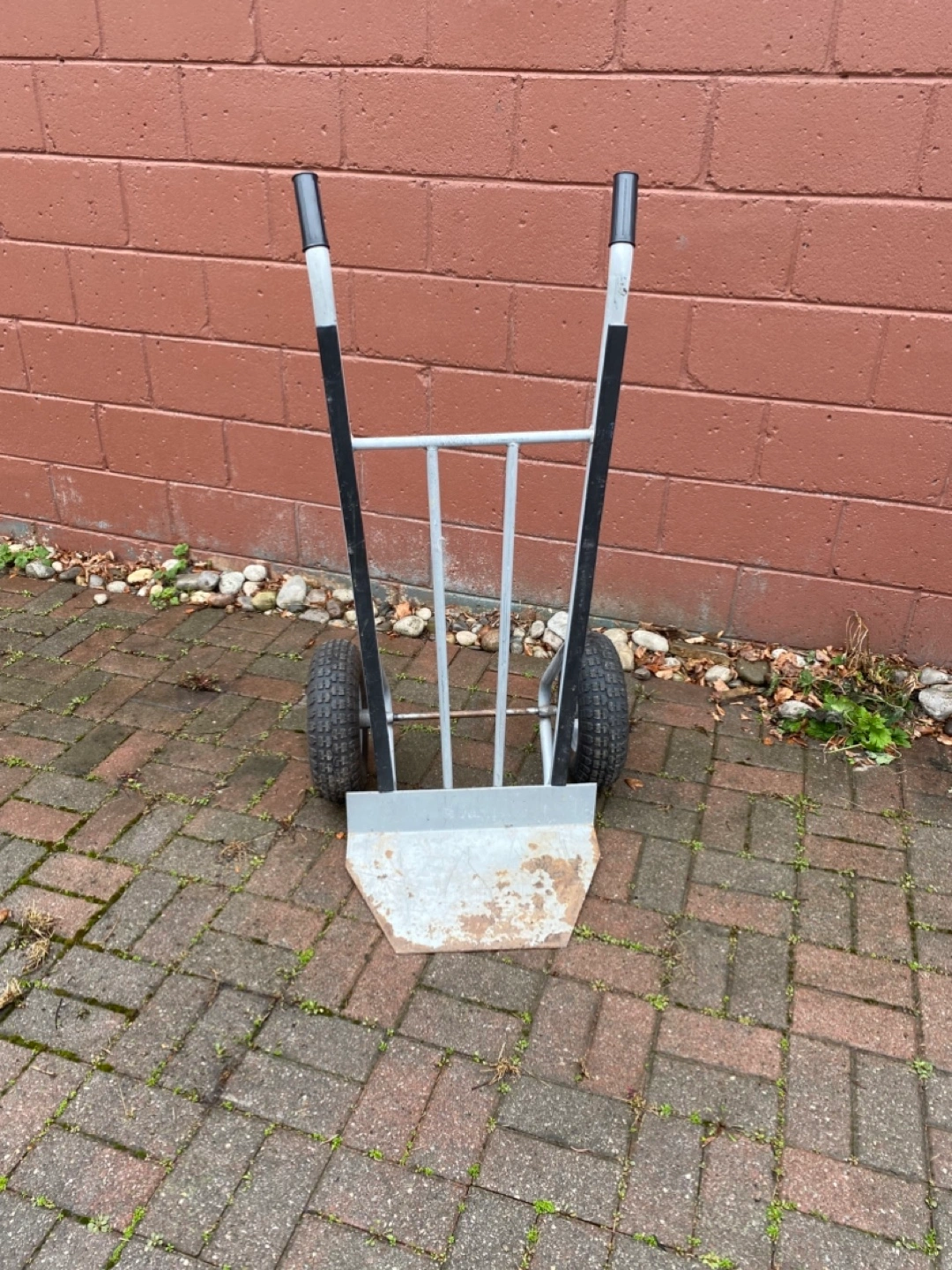 Selling a used hand truck or dolly. It's perfect for moving heavy items around the house or garden. It's in good working condition, ready to help you with your moving needs