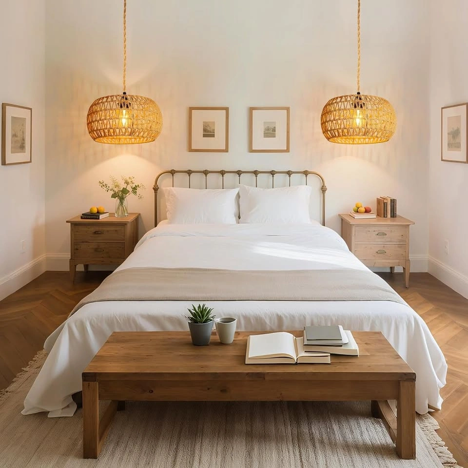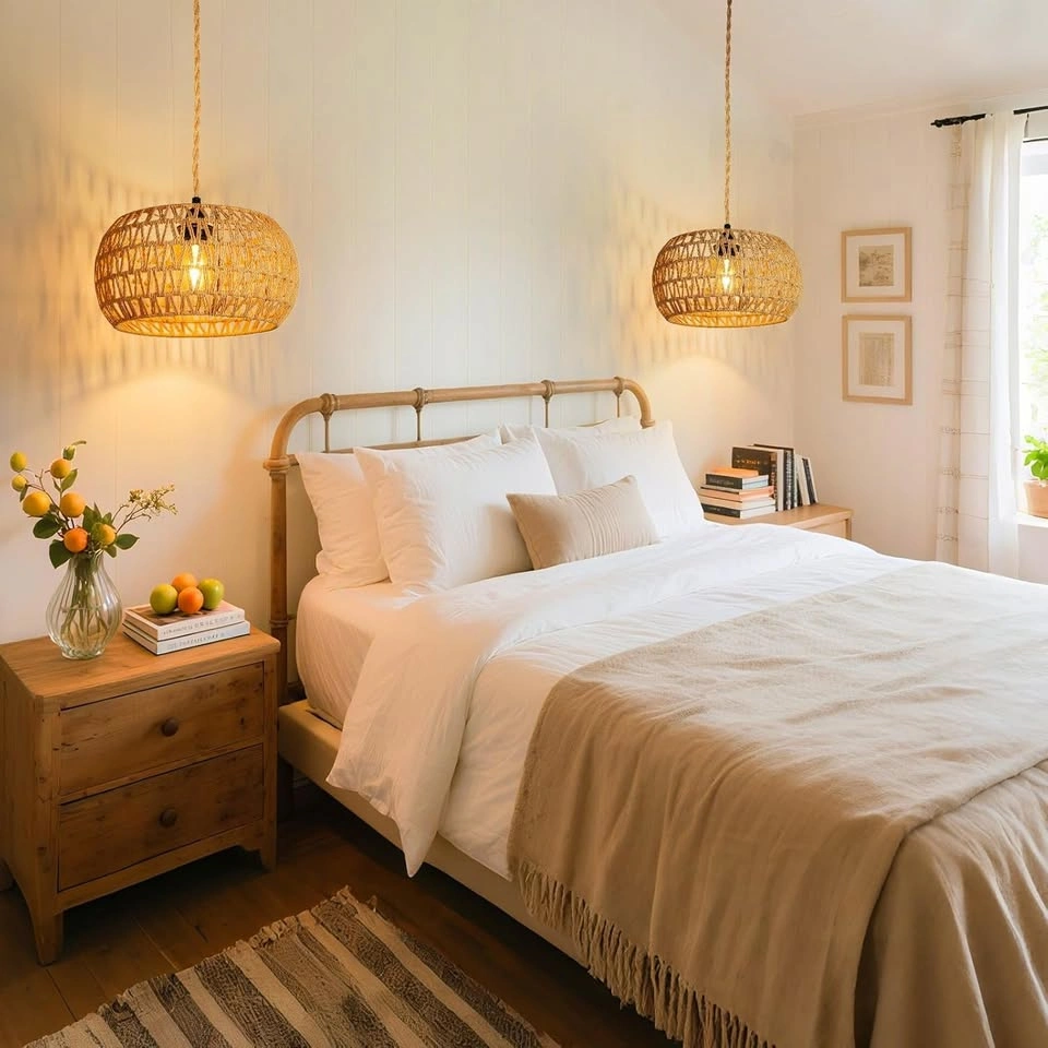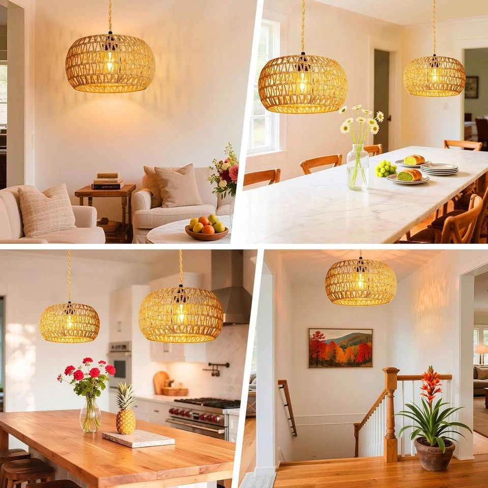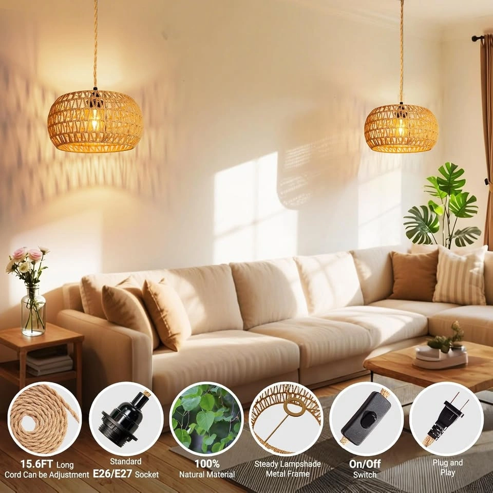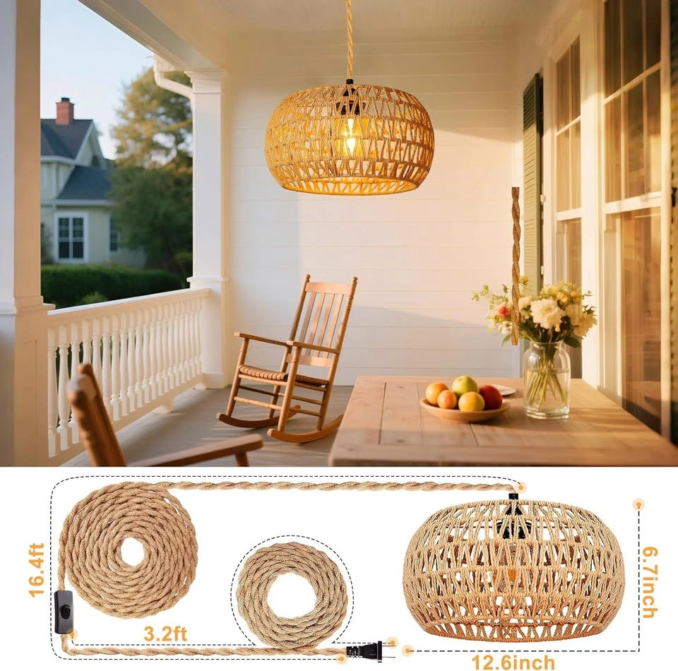 Handcrafted Hanging Lamp, Rattan Pendant Light, 16.4ft Cord