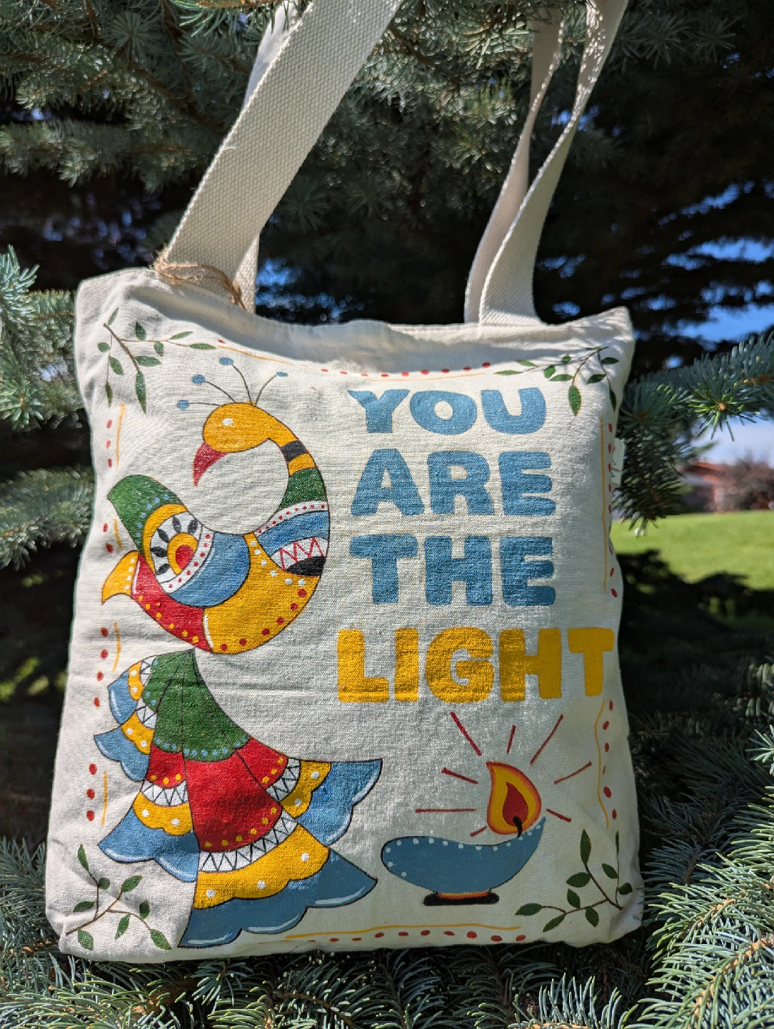 Check out this unique handcrafted tote bag! It's perfect for carrying your everyday essentials with a touch of artistic flair. The bag features beautiful designs and sturdy construction, making it both stylish and practical