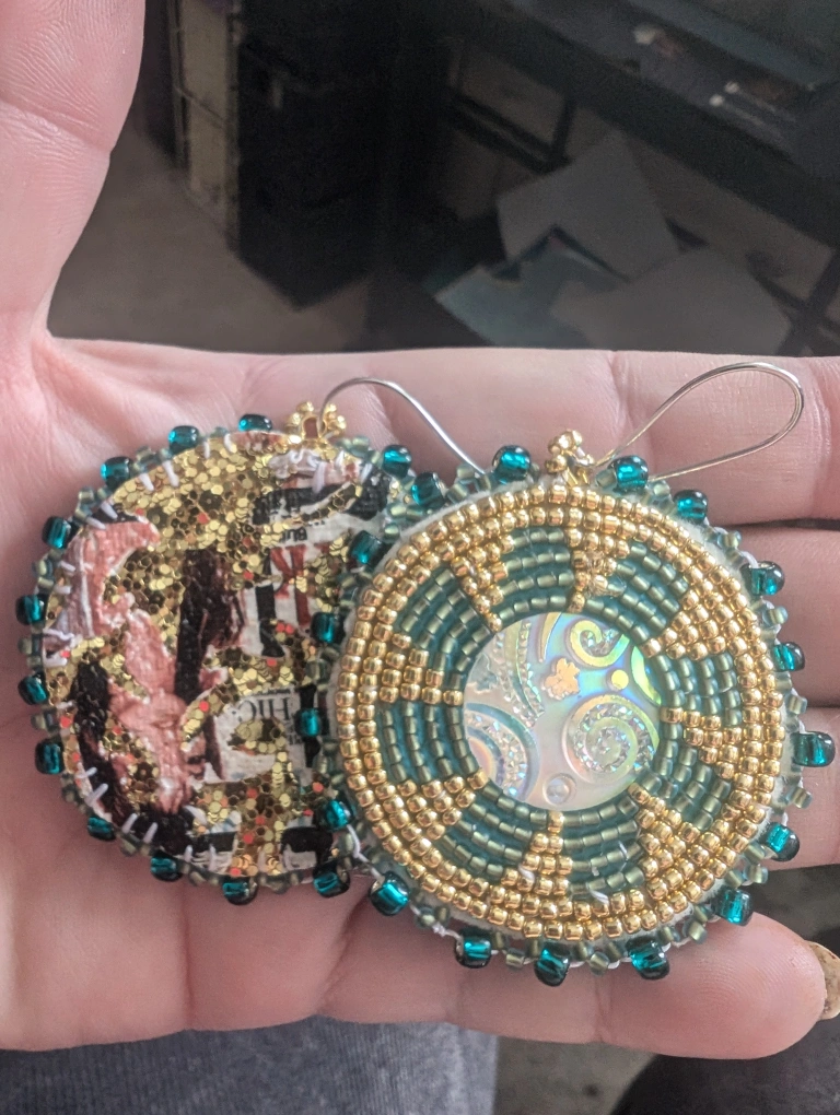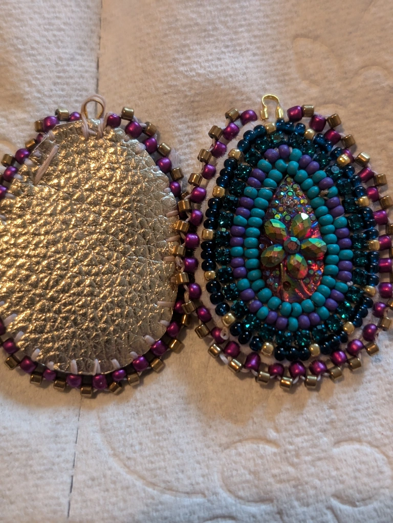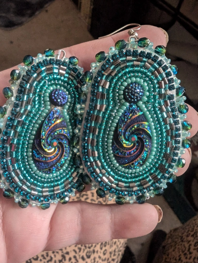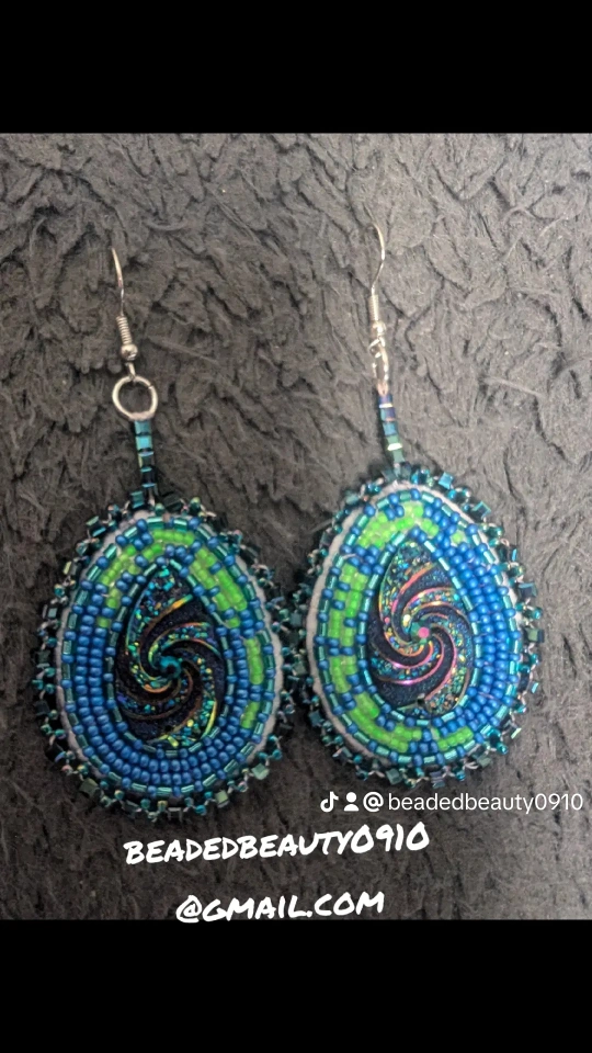****EARRINGS IN PIC AVAILABLE FOR PURCHASE**** CUSTOM handmade beaded earrings. Hook studs clip-ons. variety of cabochons available to pick from. colors, textures. the sky is the limit. prices vary depending on materials used and time spent. please inquire. pick up only at my location.