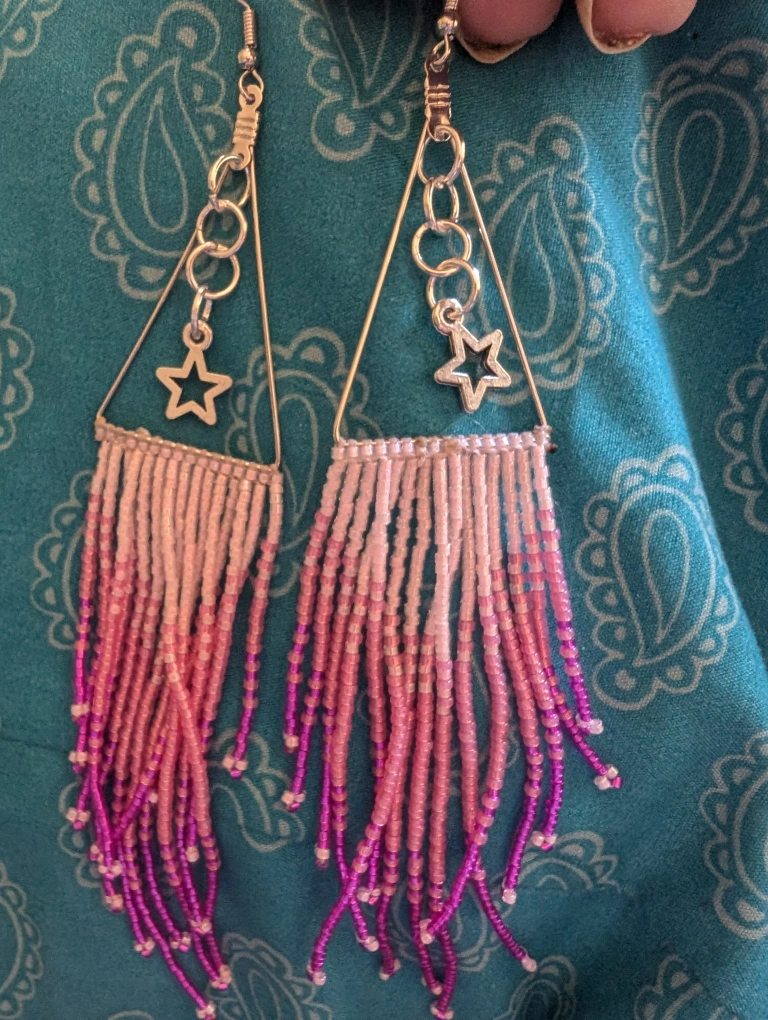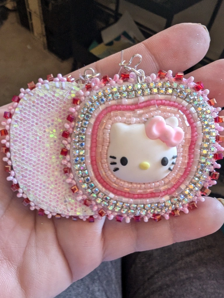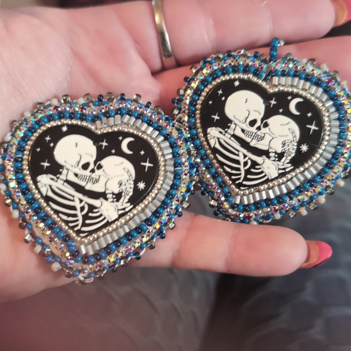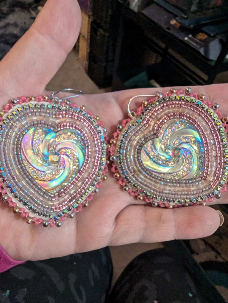 ****EARRINGS IN PIC AVAILABLE FOR PURCHASE**** CUSTOM handmade beaded earrings. Hook studs clip-ons. variety of cabochons available to pick from. colors, textures. the sky is the limit. prices vary depending on materials used and time spent. please inquire. pick up only at my location.