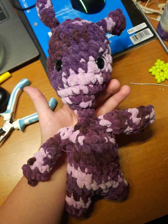 Selling a handmade crochet plush toy! It's a unique, cuddly friend, perfect for kids or collectors. The plush is made with soft, high-quality yarn in shades of purple. It's in great condition and ready for a new home!