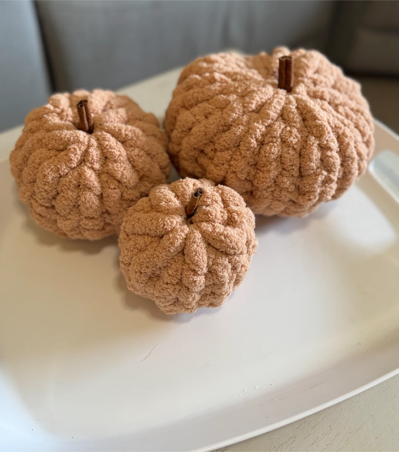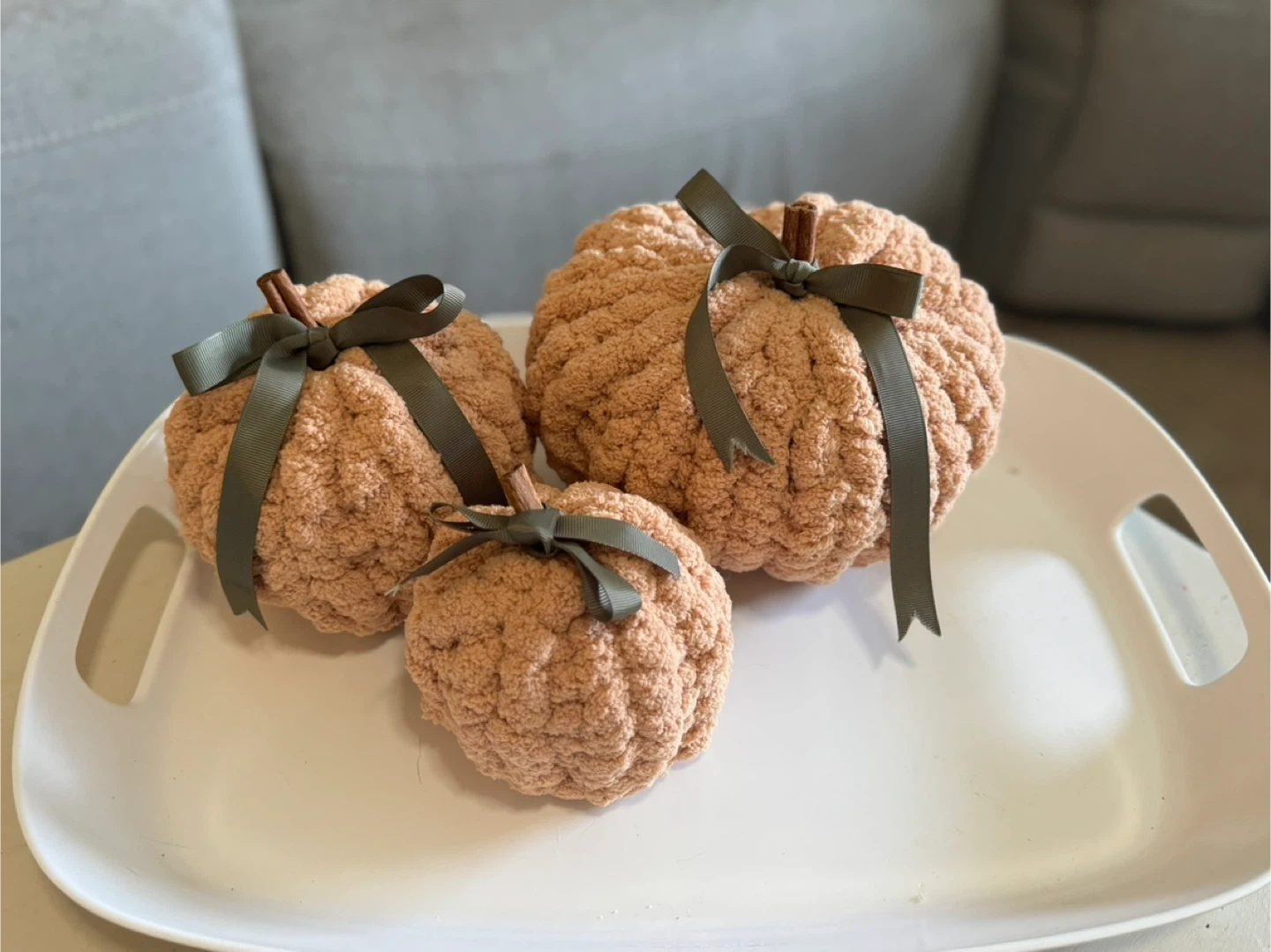 These adorable handmade crochet pumpkins are perfect for adding a cozy touch to your fall decor! They come in a set of three different sizes. They are made of soft yarn and have a cute little stem, either choose from a cinnamon stick or a knitted stem. Small $10 Medium $12 Large$15 All three sizes $30