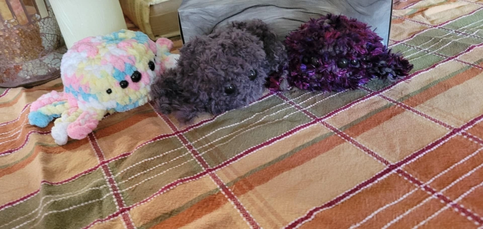 Selling these adorable handmade crochet spider plushies! They're super soft and cuddly, perfect for kids or anyone who loves cute things. Just in time for the cool spooky weather! can be made in any colour+
