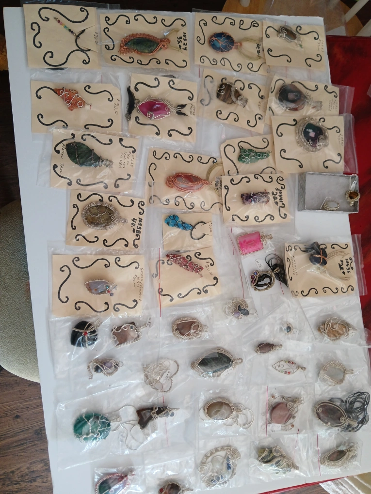 I'm selling a variety of handmade gemstone pendants, each uniquely wire-wrapped. These pendants feature different stones and designs. Perfect for adding a personal touch to your style! Assorted prices.