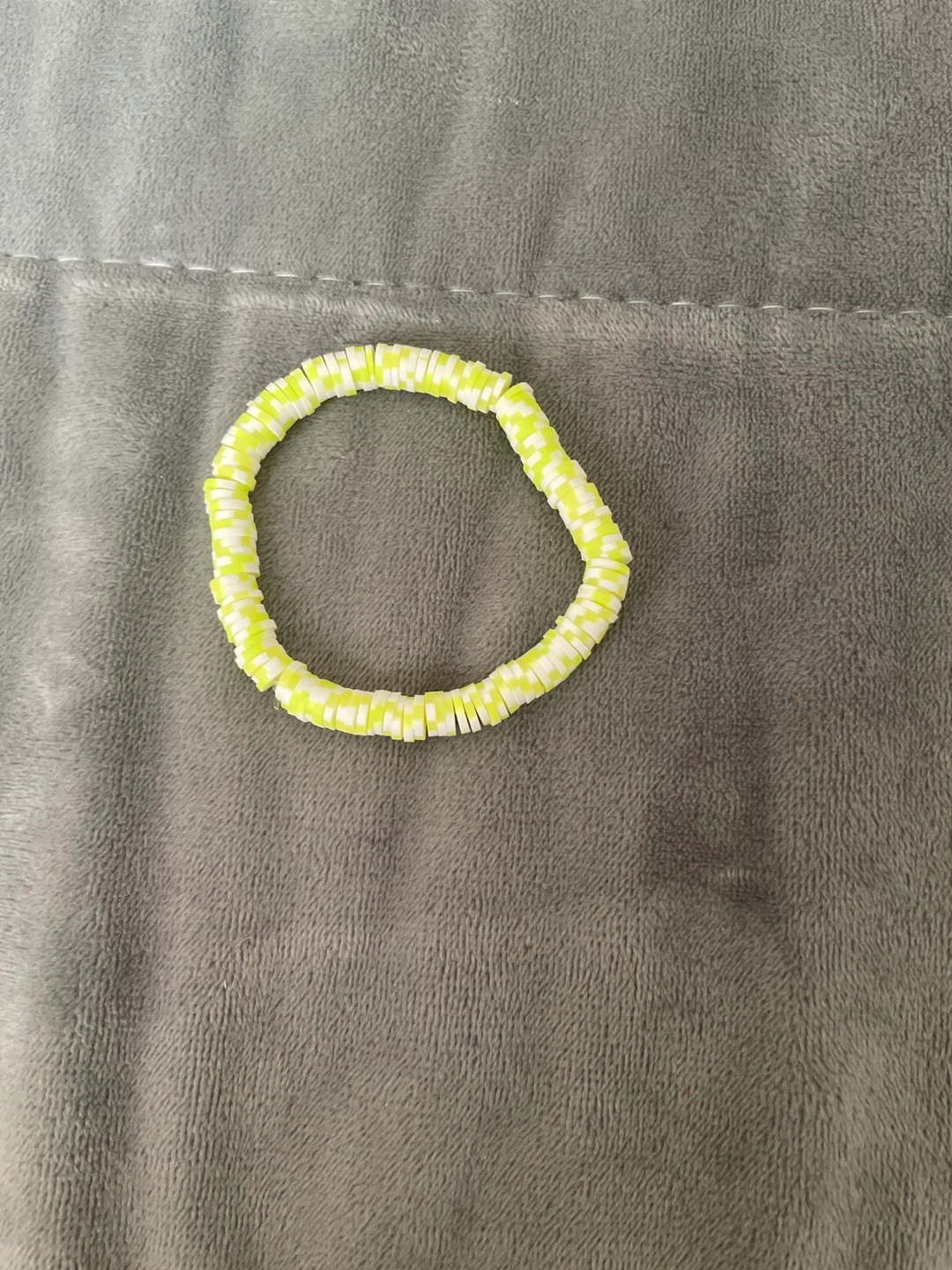 This is a cute handmade bracelet made with heishi beads! The colours are yellow and white. It's perfect for adding a pop of colour to your outfit!