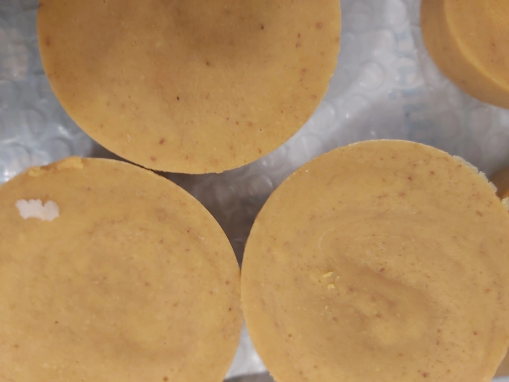 Set of handmade honey soap bars. Variety of shapes and sizes. Some bars decorated with small hearts. Perfect for gifting or personal use. Gentle on skin.
