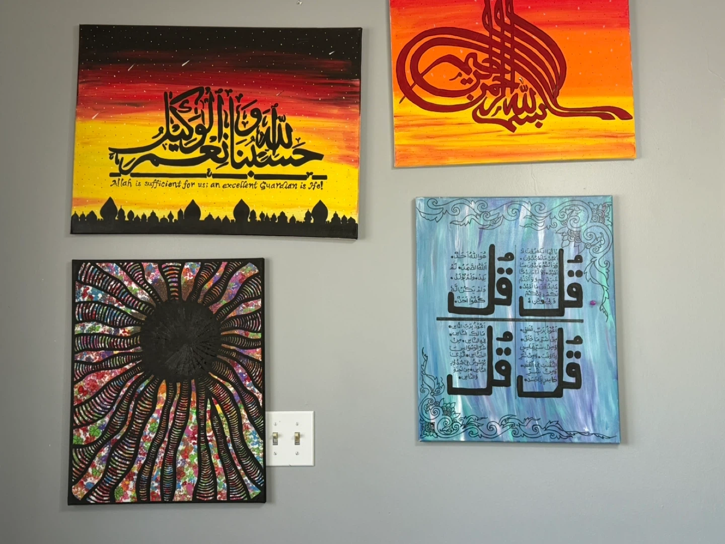 Selling a collection of handmade Islamic calligraphy art canvases. Each piece features unique designs and vibrant colours. Perfect for adding a touch of spirituality and beauty to any room. Check out the photos for details! I can customize to your colors, words, etc.