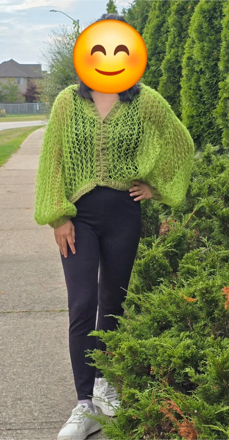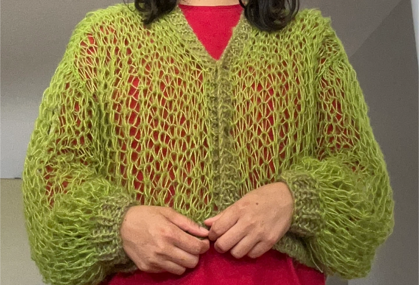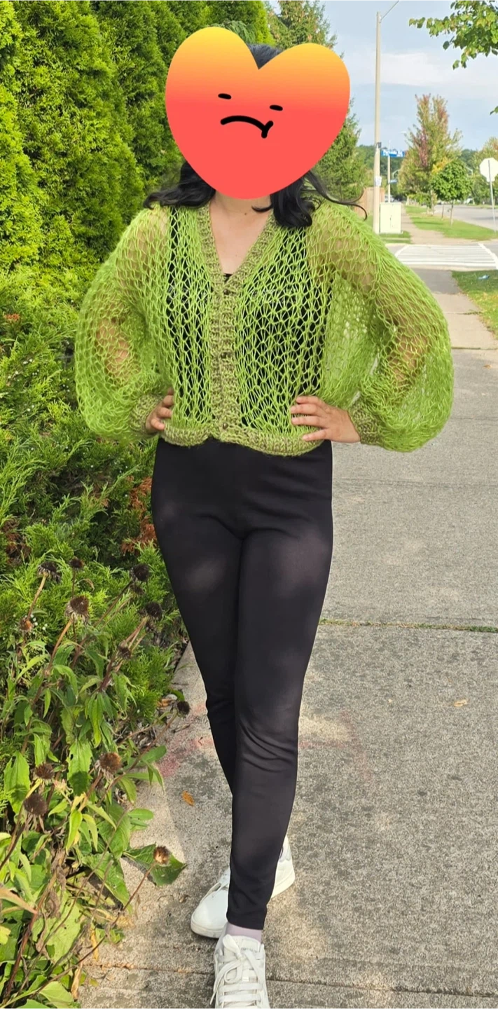 Beautiful, handmade knit cardigan in a lovely shade of green! This unique piece is perfect for layering and adding a touch of cozy style to any outfit. It's in great condition and ready for a new home. Can customize on your colour and size. This cardigan is small in size.