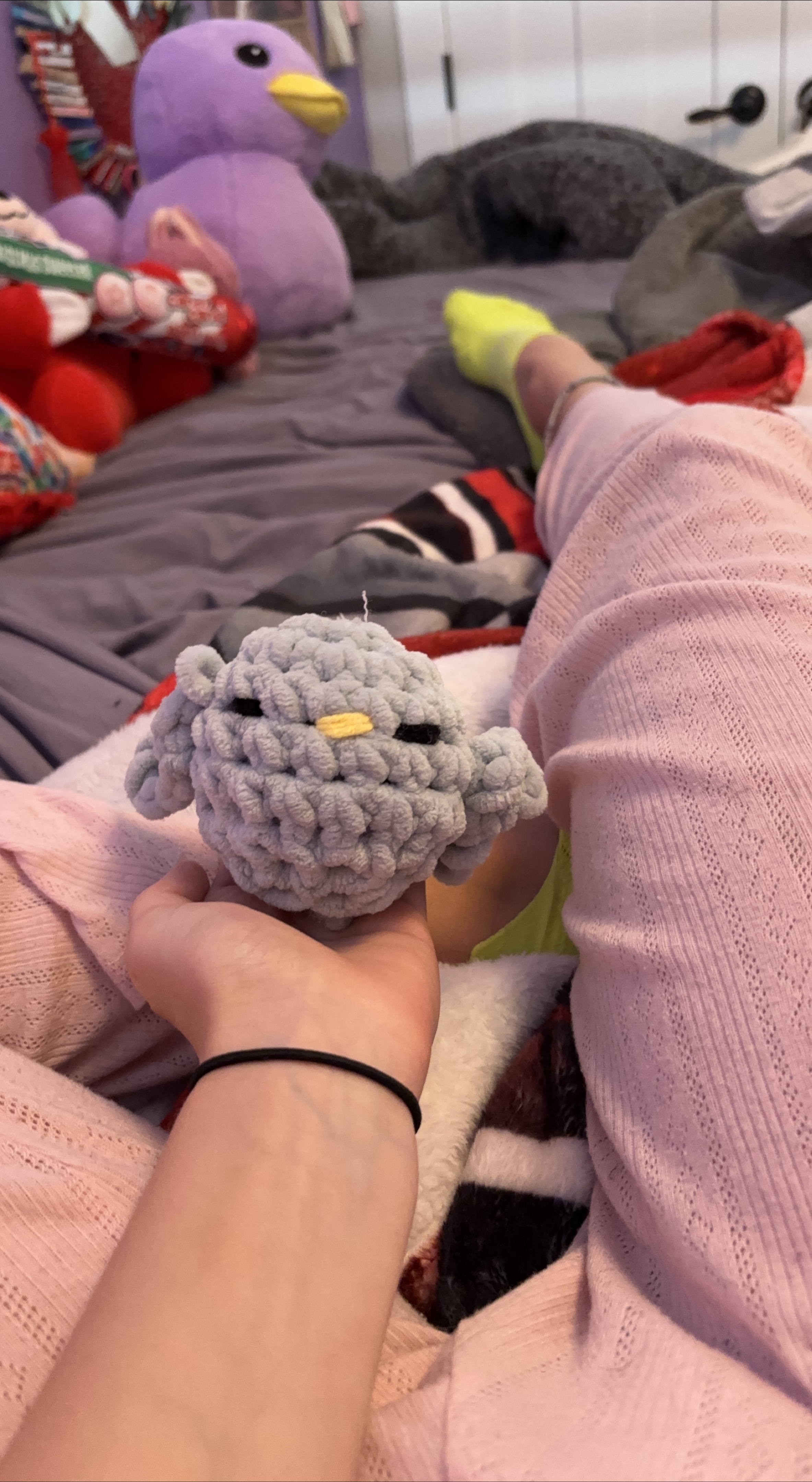 Selling a cute, handmade knitted bird plushie! It's a soft, grey colour and in great condition. Perfect for adding a touch of handmade charm to any room or as a sweet gift for someone special