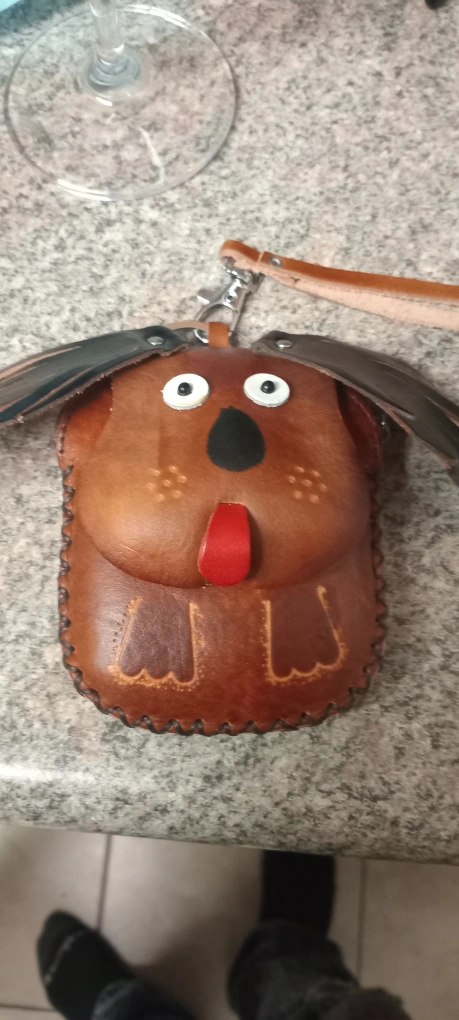 Super cute handmade leather coin purse! It's designed to look like a dog. Perfect for carrying your coins or small items in stylehanf made from Peru.
