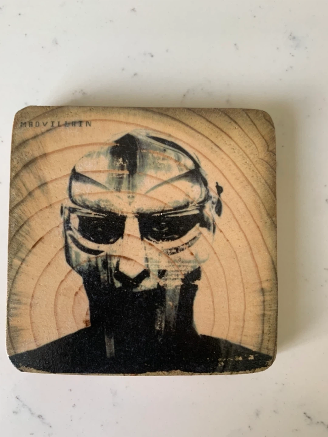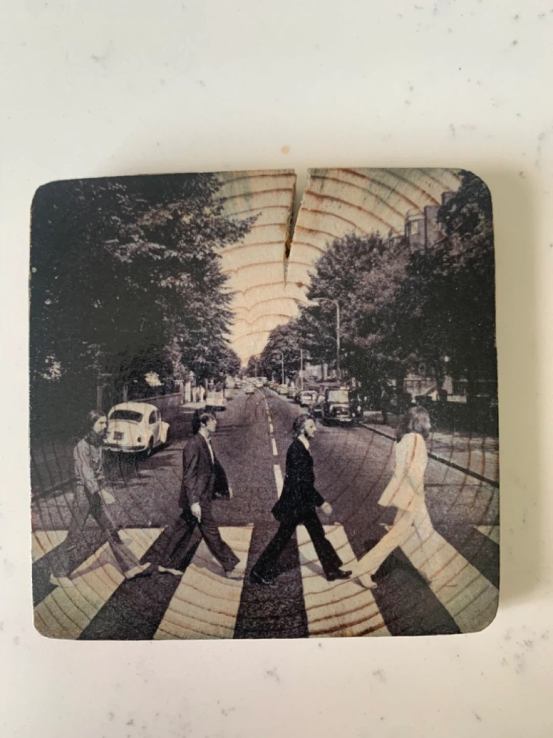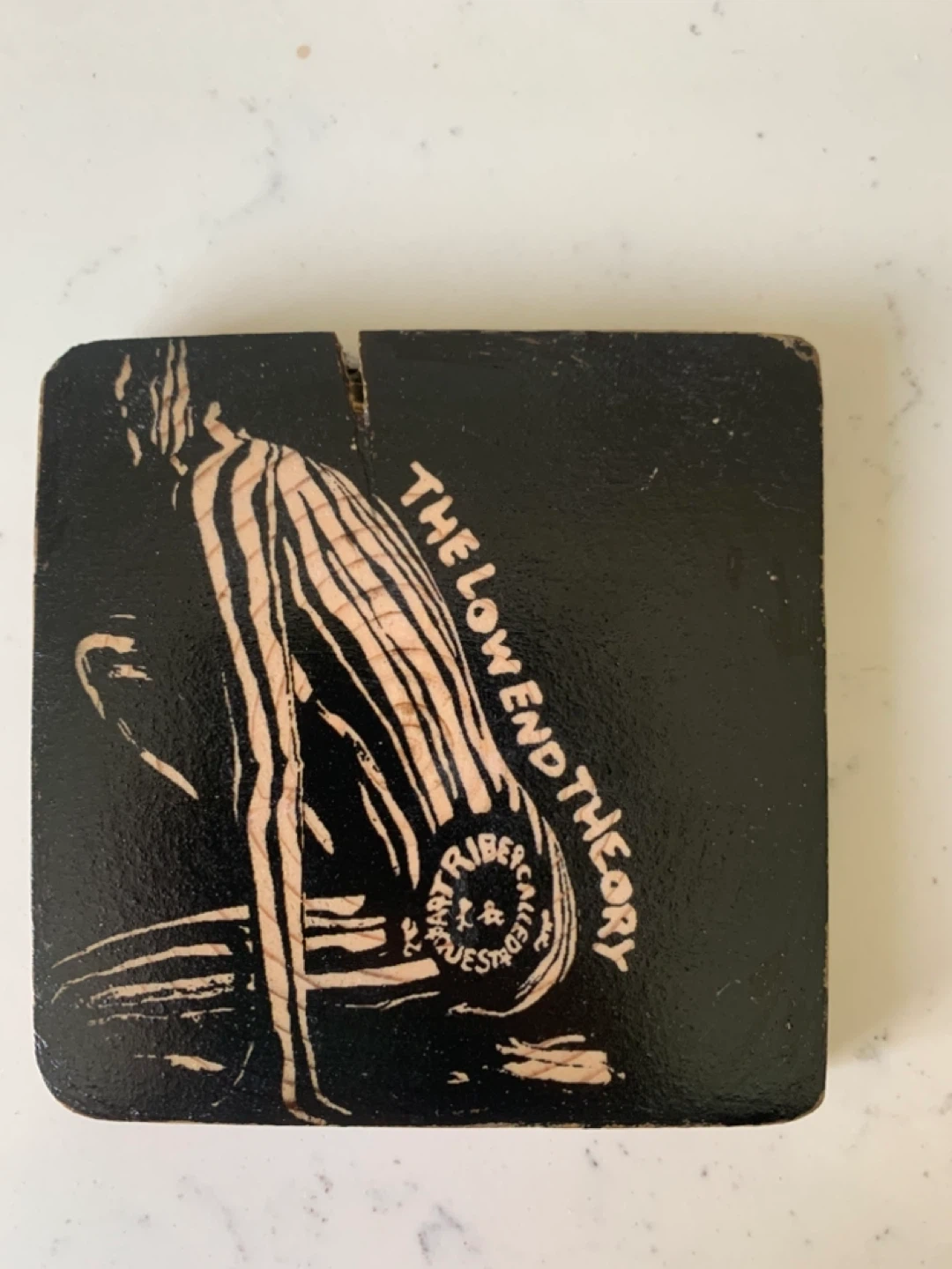 Selling a handmade music-themed coaster set! It features iconic album covers and music references. A unique addition to any music lover's home! $60 for 6 coasters and the record player coaster holder