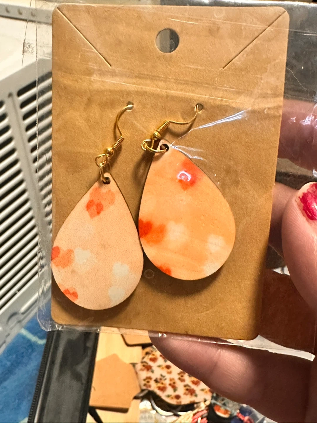 Selling a variety of handmade wooden earrings! They're all lightweight and have unique patterns. Perfect for adding a pop of colour and style to any outfit. They are in great condition and ready for a new home! 6$ a set 2 for 10$