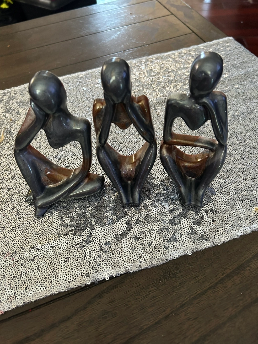 Handmade resin The Thinkers. Mottled brown and gold. Beautiful addition to your home decor