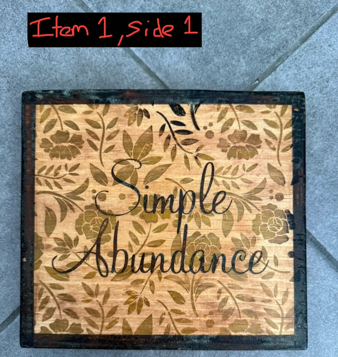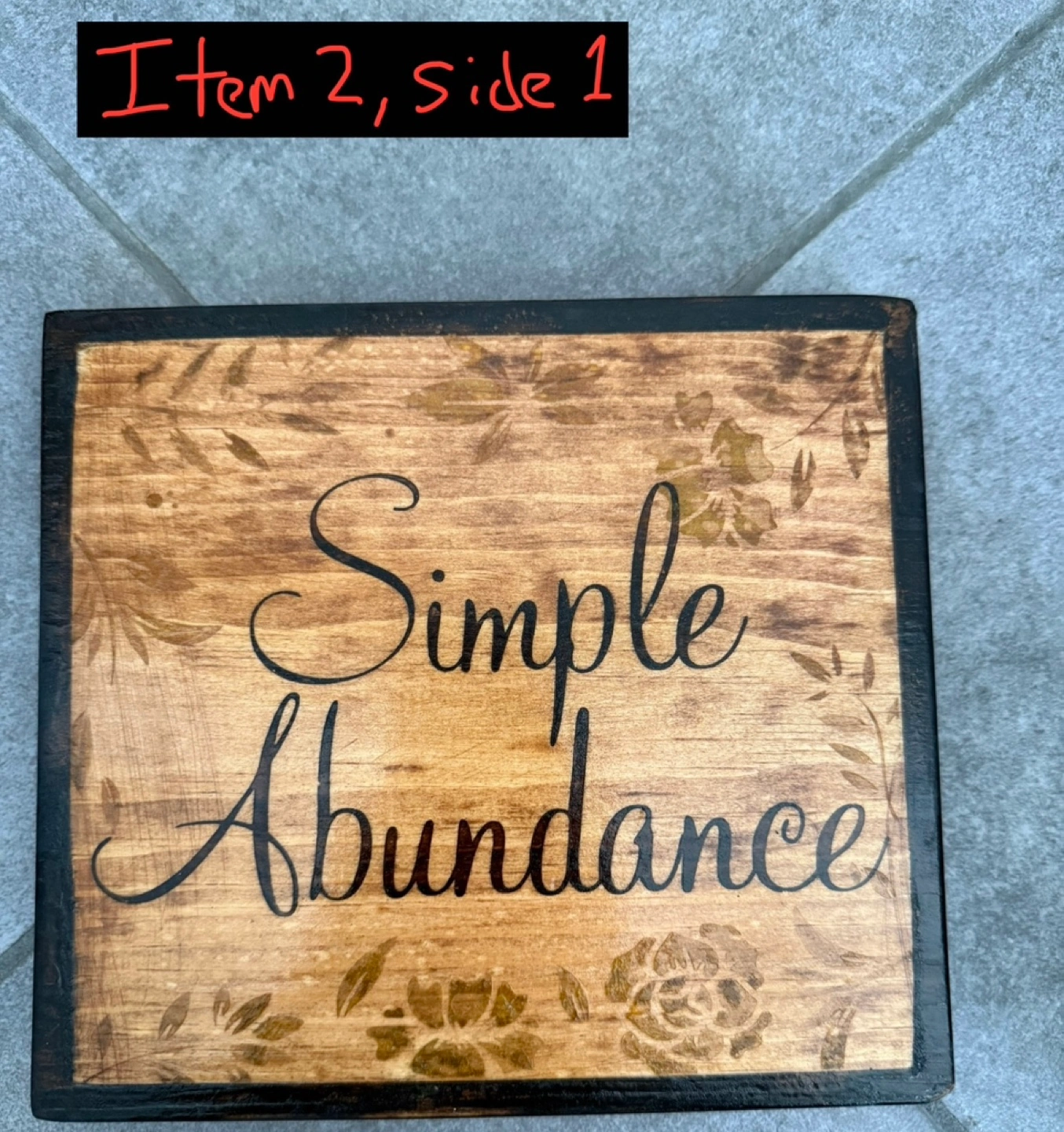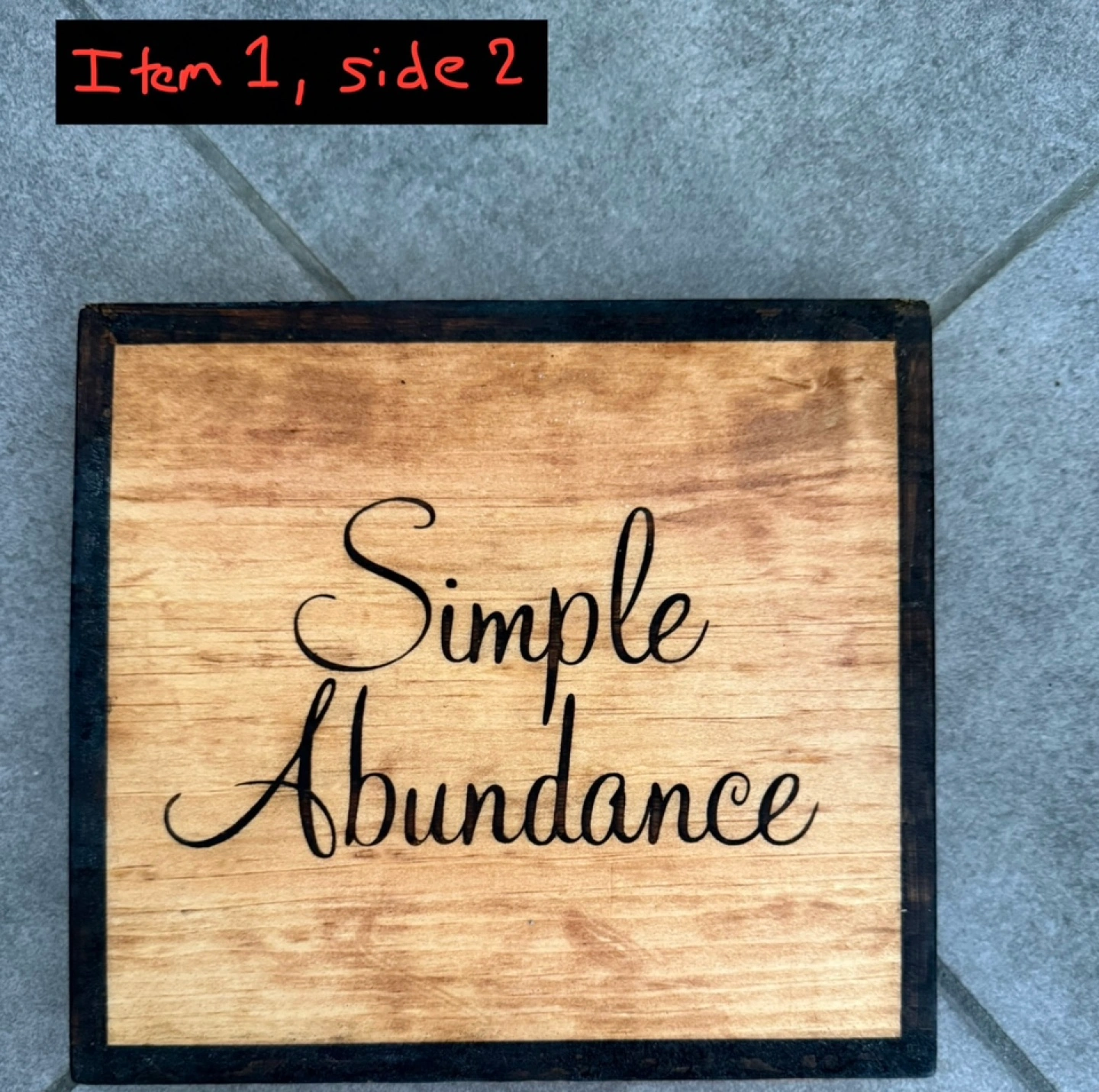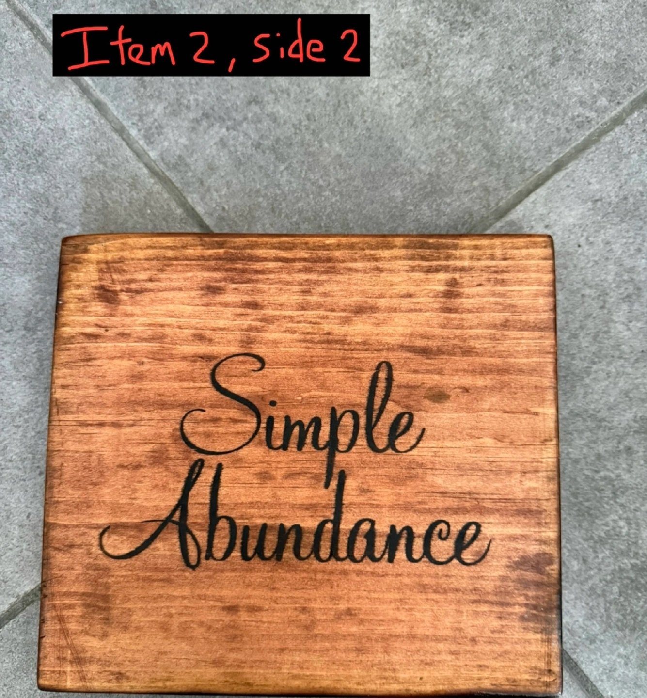 These are test wooden signs I made when I was creating a bigger sign for my mother. Both are around 8 inches x 7.25 inches sanded. Both signs are wood burned and stained by myself. The first sign is coated in a Verathane water based Satin top coat on side 1 and nothing on side 2. The second sign is coated in Shellac top coat on side 1 and nothing on side 2 5$ each