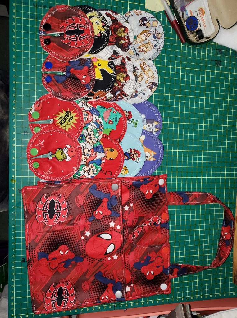 I'm selling a variety of handmade tubie pads and bags. They come in different patterns and sizes. Great for adults or children . Made as ordered