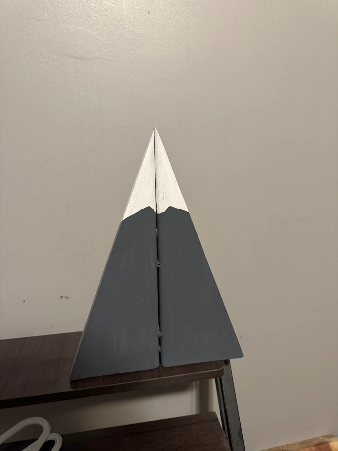 handmade wooden mountain decor piece! It's painted grey with a white 'snow cap'. Perfect for adding a touch of rustic charm to any room