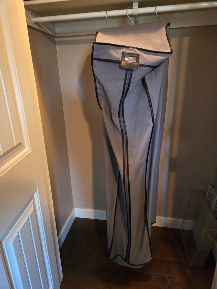 Like new. 19" depth, 15" wide and 55" long. Declutter your space with this hanging gift wrap, bows and ribbon organizer. It's keeps all your wrapping paper needs organized. Can also be used as a garment bag which it is really for but worked great to hold wrapping paper. Cross-posted. 💥If you have a moment please have a look at my other items for sale.