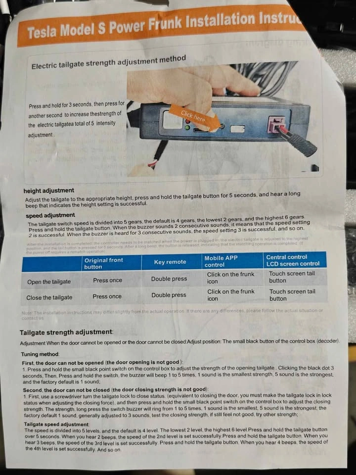 Hannshow Tesla Model S Power Frunk/Trunk (New/Open box)