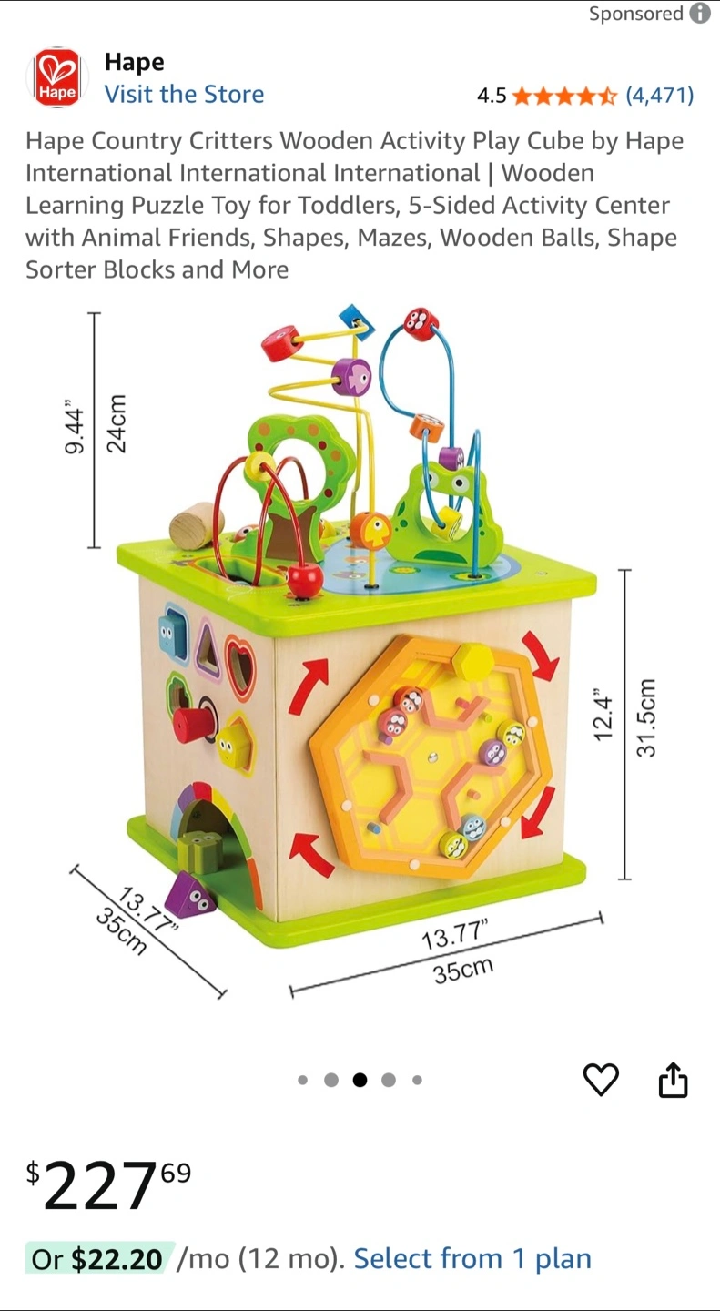 This Hape Country Critters Wooden Activity Play Cube is a fantastic learning toy for toddlers!