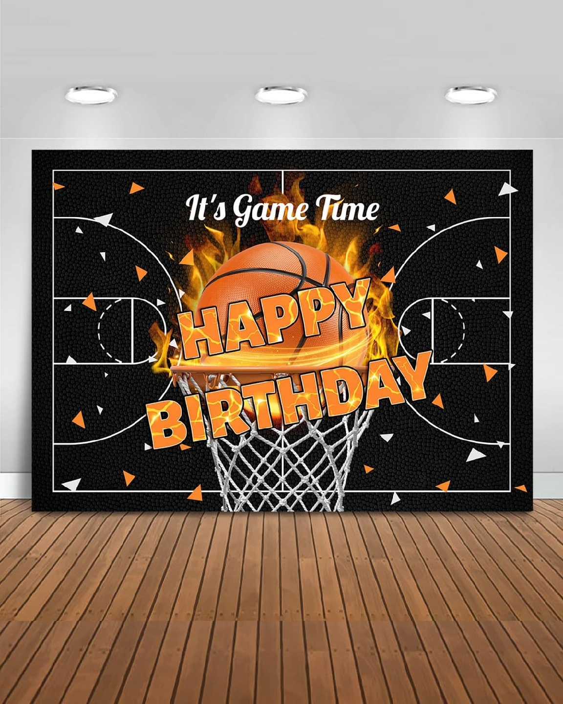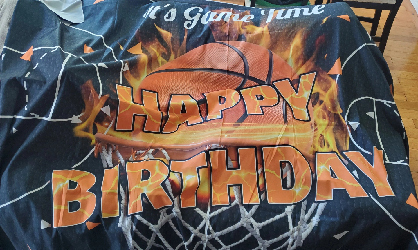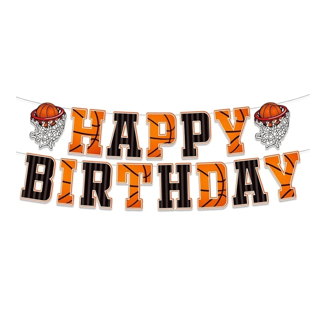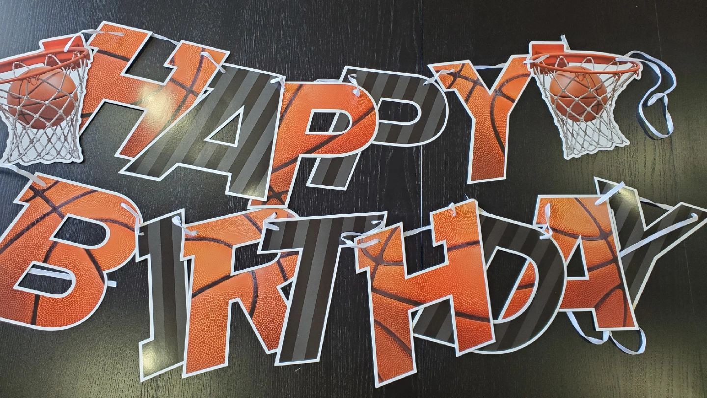 It's game time! I have a Happy Birthday basketball-themed backdrop and banner. Perfect for a basketball-themed birthday party!