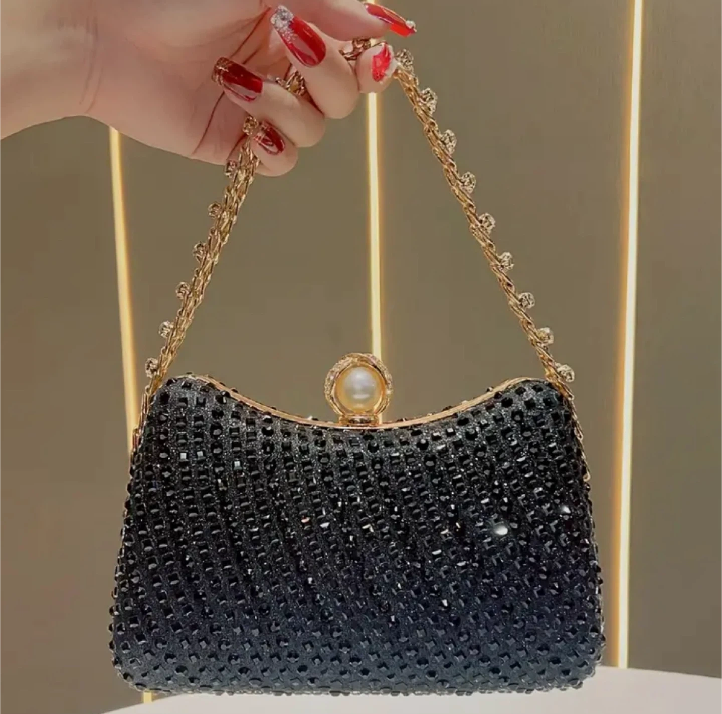 Selling a selection of sparkly evening clutch purses. Perfect for a night out or special occasion. They come in a variety of colours and styles, all with sparkly details and chain straps. Add a touch of glamour to your outfit!