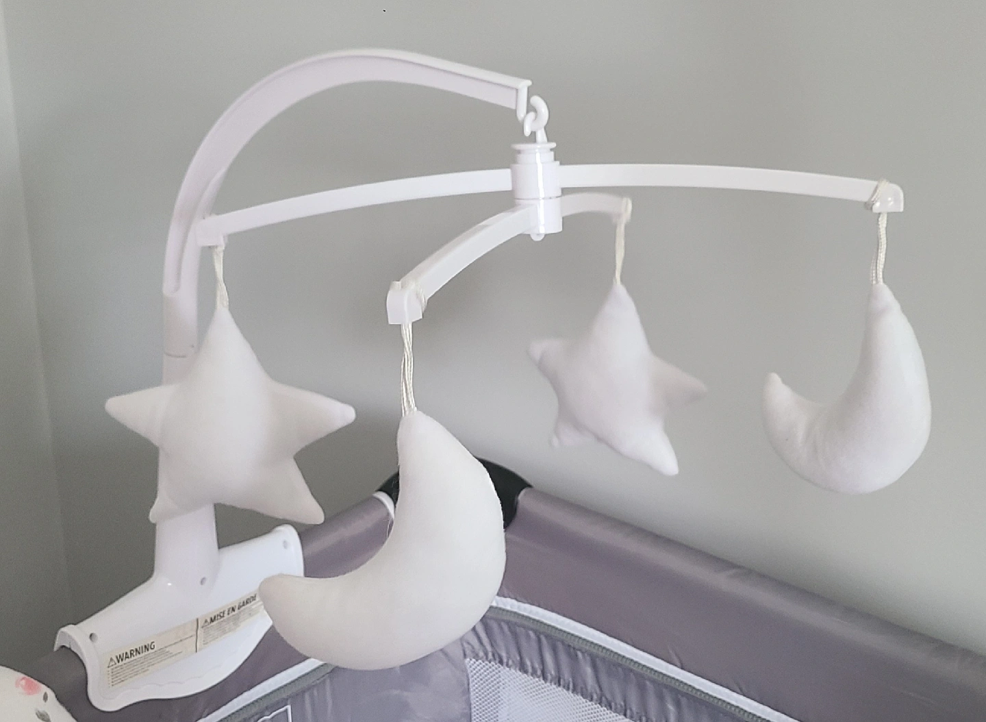 A cute, gently used baby mobile by Harmony! It features soft star and moon plushies in a clean white colour. Perfect for soothing your little one to sleep. Ready to go to a new home!
