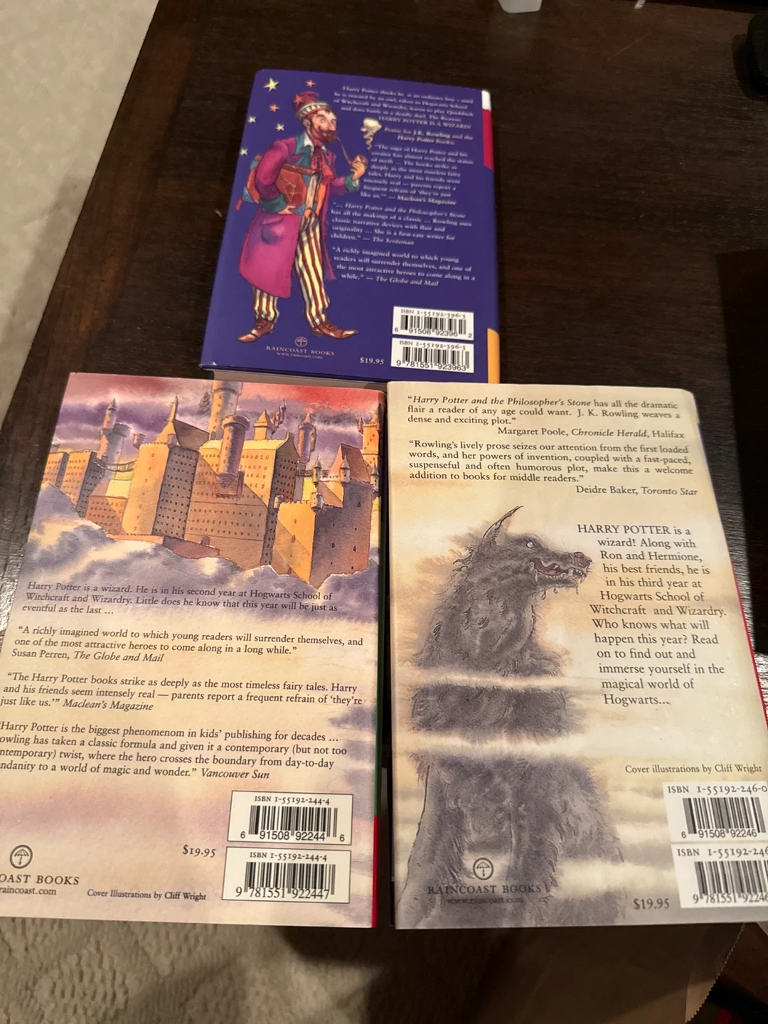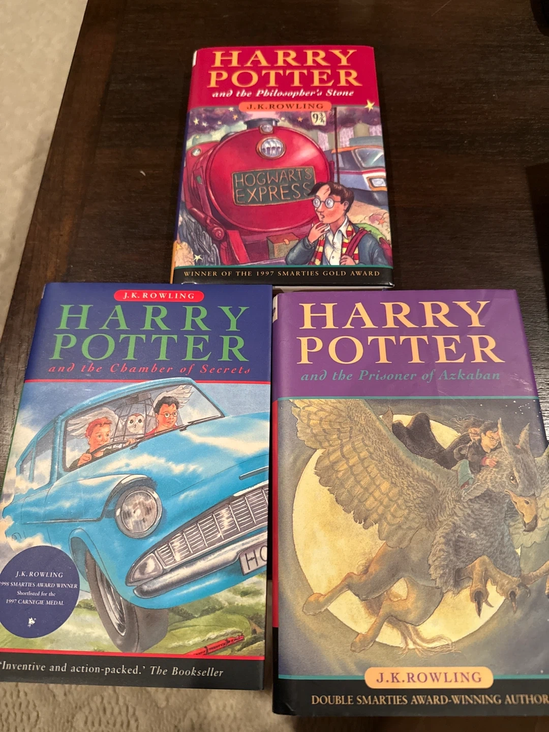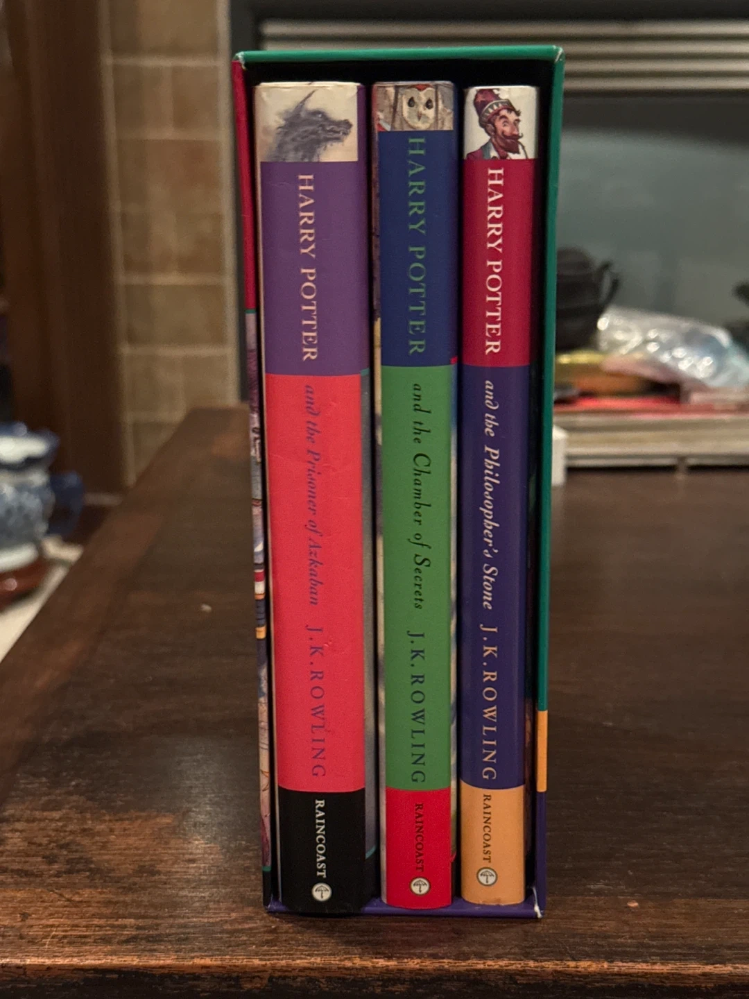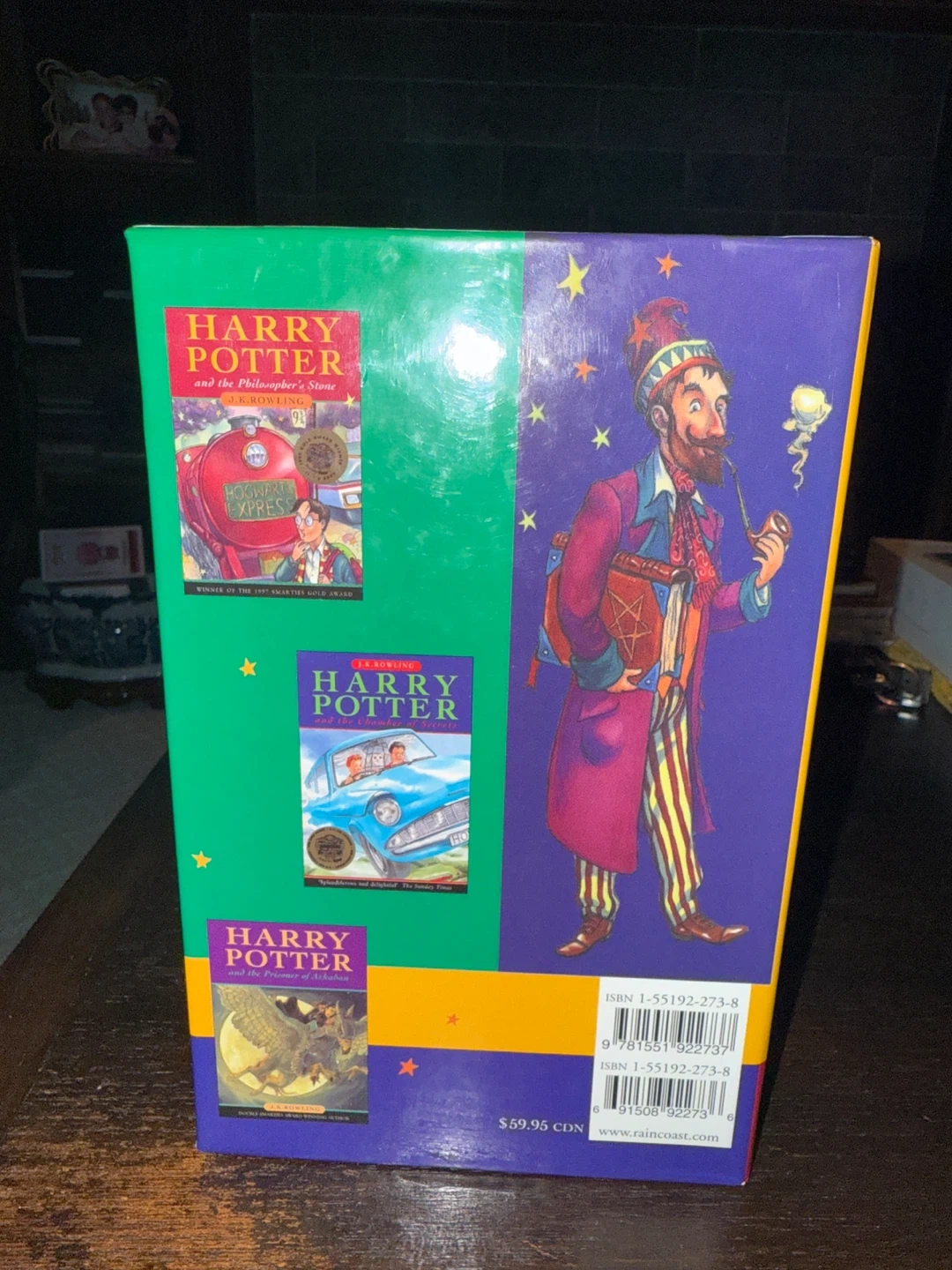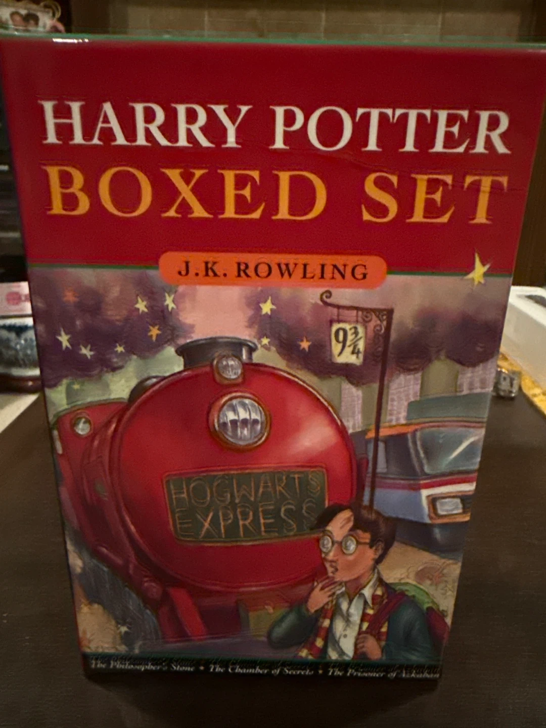 Selling a Harry Potter Boxed Set that includes books 1-3 by J.K. Rowling! The series includes: - Harry Potter and the Philosopher's Stone - Harry Potter and the Chamber of Secrets - Harry Potter and the Prisoner of Azkaban Good condition books and box