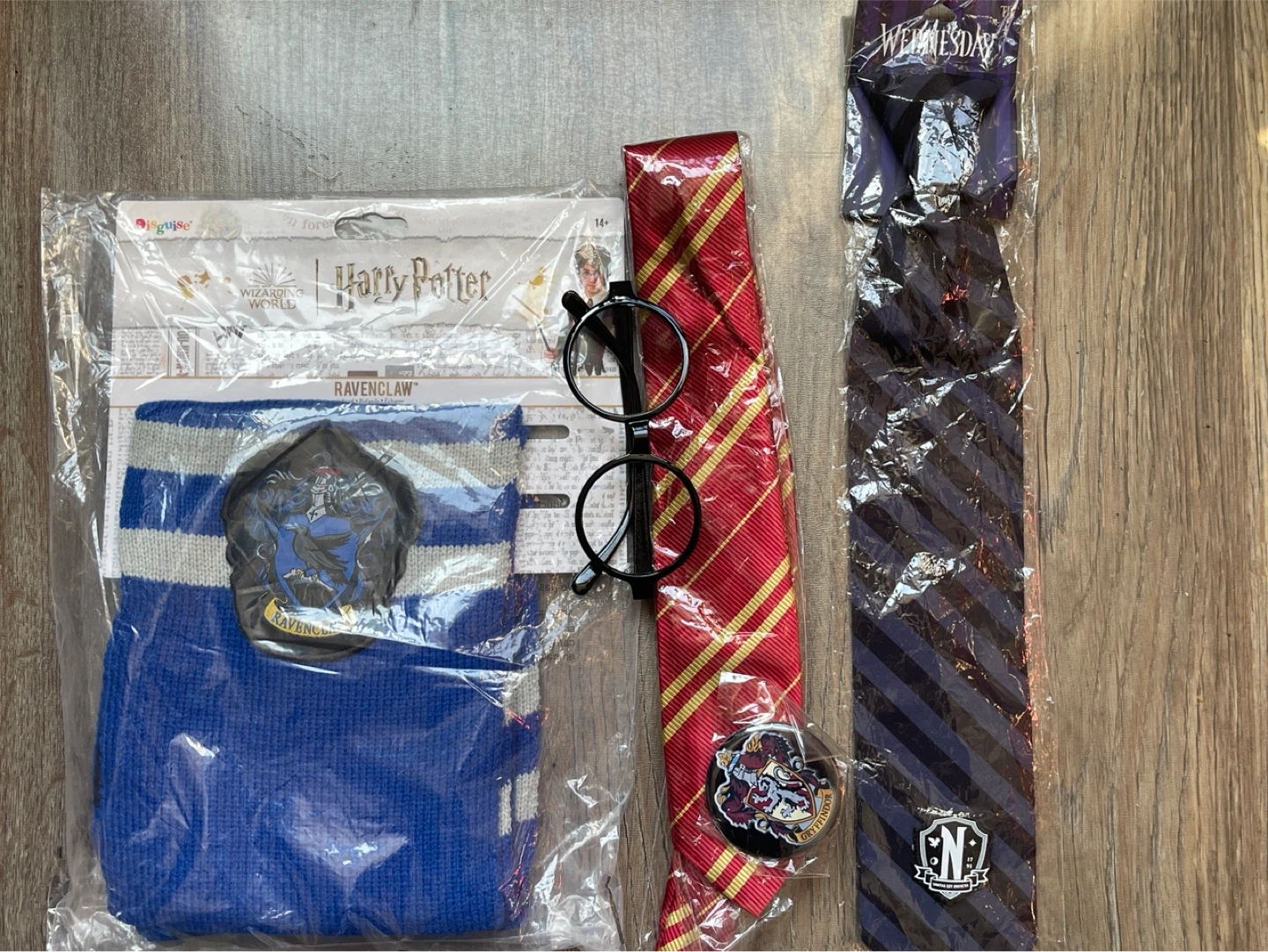$10 each. $25 Take ALL. Harry Potter / Wednesday Halloween Accessories Wednesday Tie (Teen/Adult-sized), Harry Potter Tie & Pin, Harry Potter Ravenclaw Scarf Pick up near Yonge Eglinton Subway