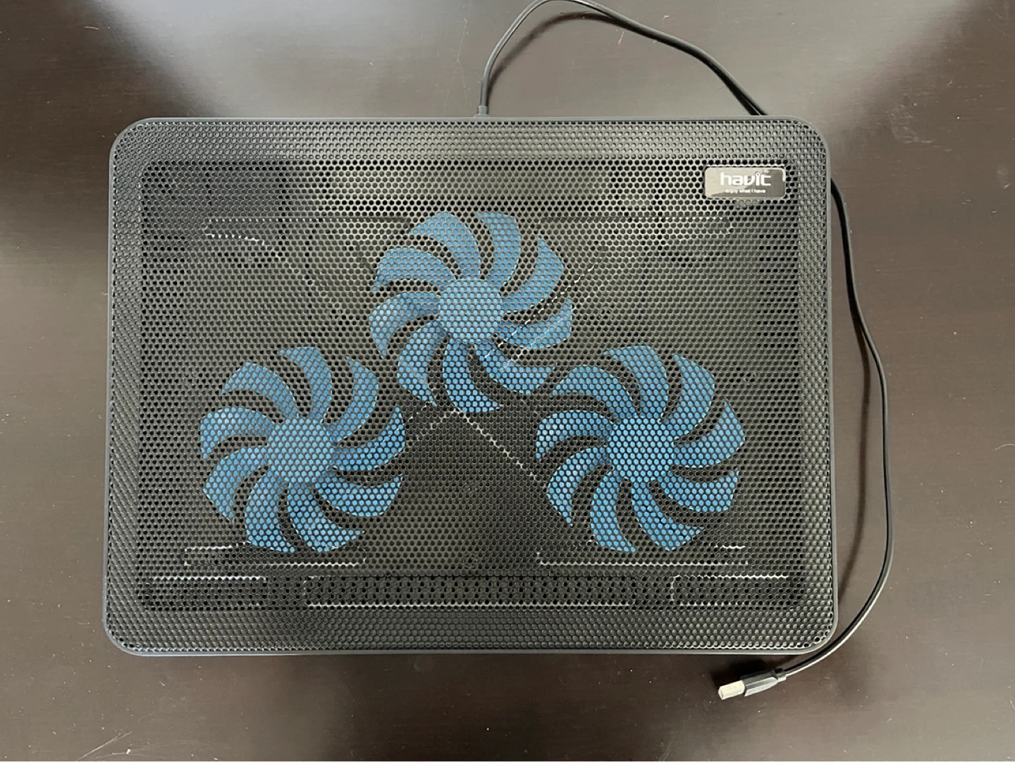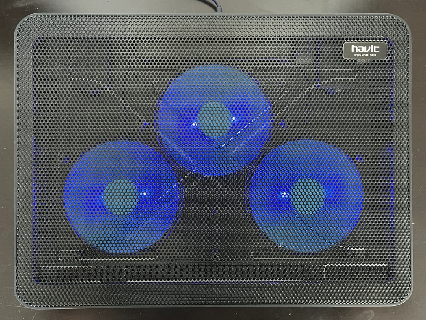 Havit HV-F2056 cooling pad. It features three fans to help dissipate heat and prevent overheating. Perfect for home or office use, this cooling pad is a great way to extend the life of your laptop