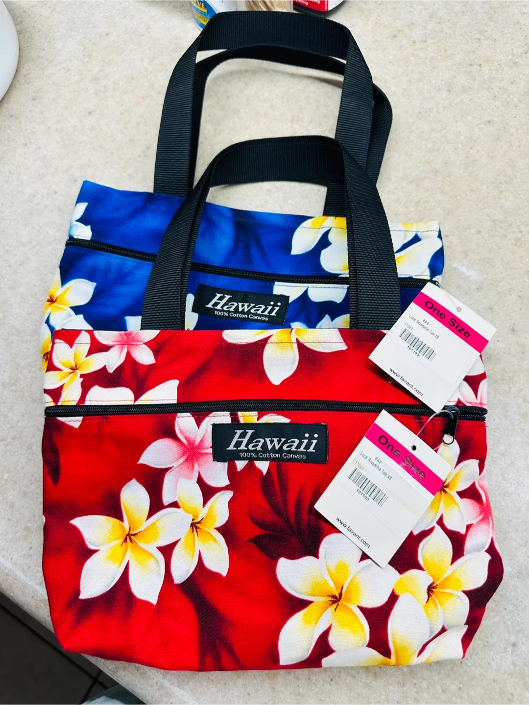 This Hawaii tote bag is made of 100% cotton canvas and features a vibrant floral design. It's a reversible tote bag, size XS. Perfect for carrying your essentials in style!