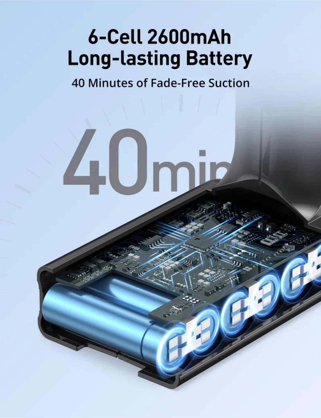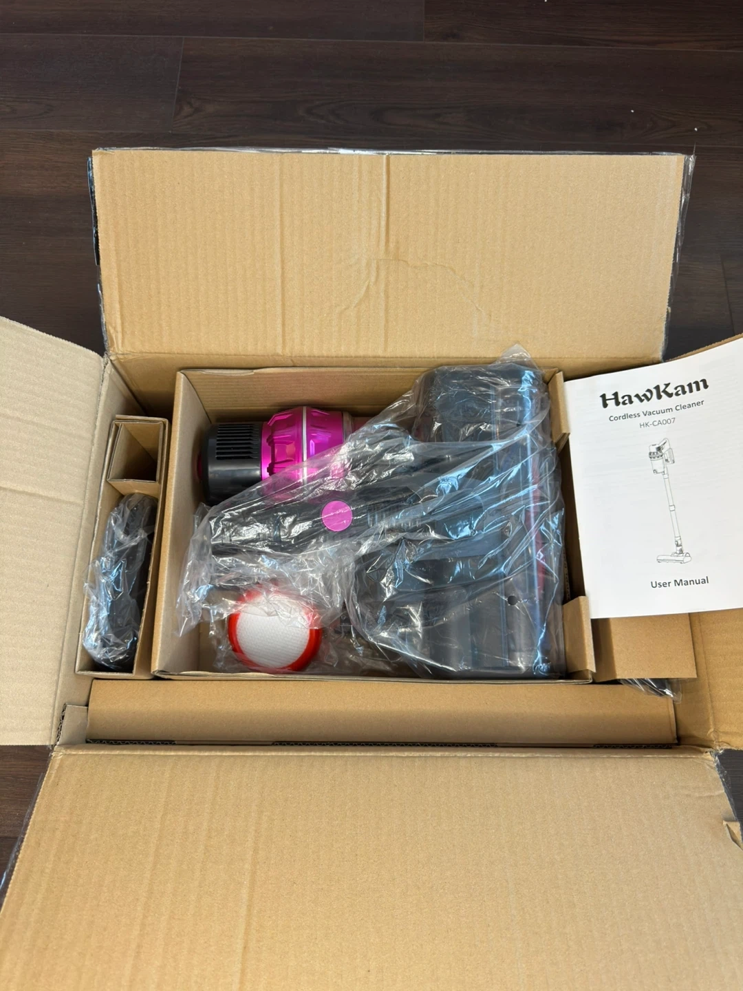 I'm selling a brand new Hawkam cordless vacuum cleaner! It comes with the original box and user manual. This vacuum offers multipurpose versatility for all your everyday cleaning needs. It features strong suction for efficient cleaning, with 30kPa at high speed and 20kPa at low speed. The 6-cell 2600mAh battery provides 40 minutes of fade-free suction