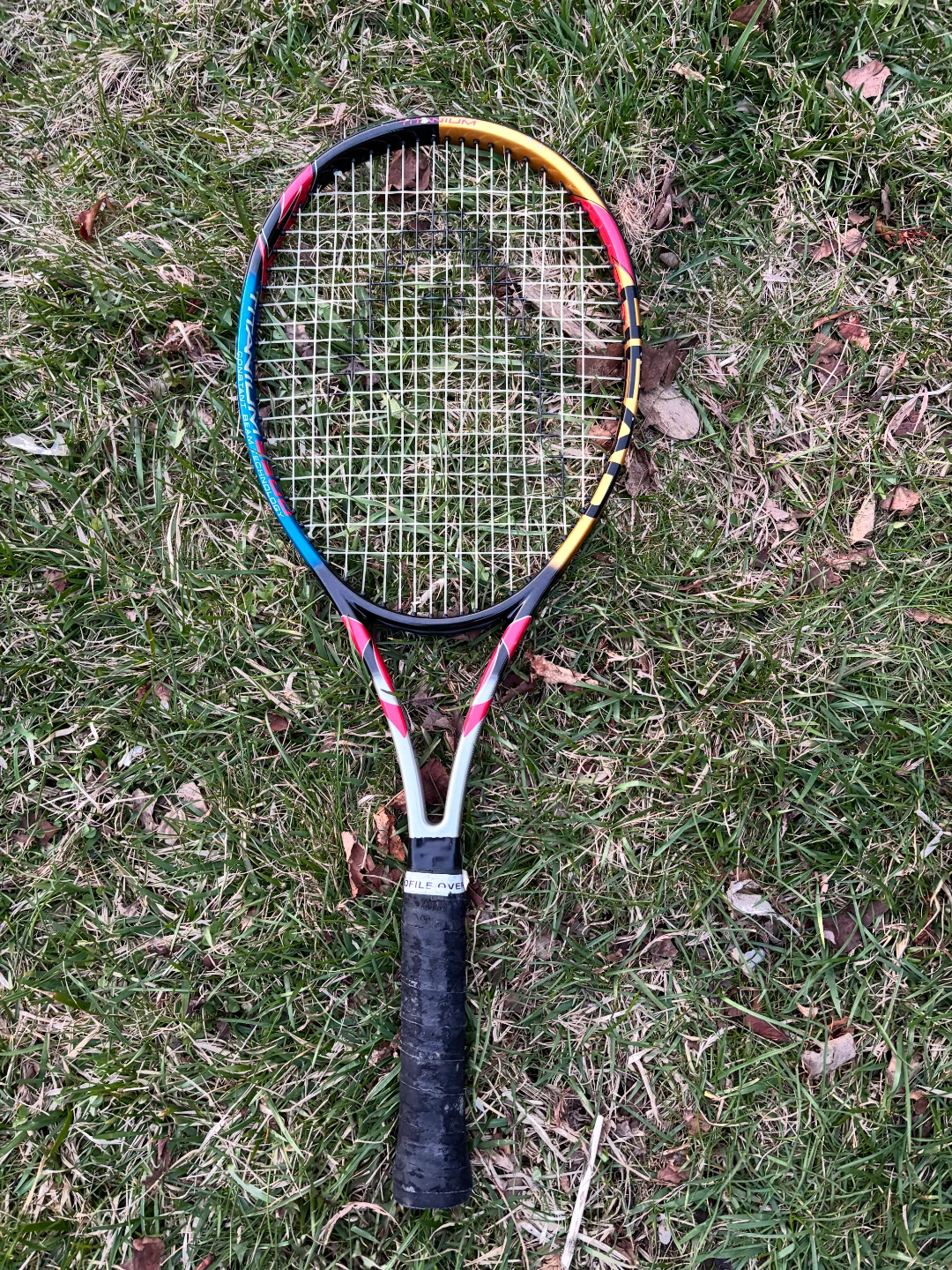 Used Head Ti Titanium 300 tennis racquet. Colourful design. Lightweight constant beam for increased control. Comes with a cover.