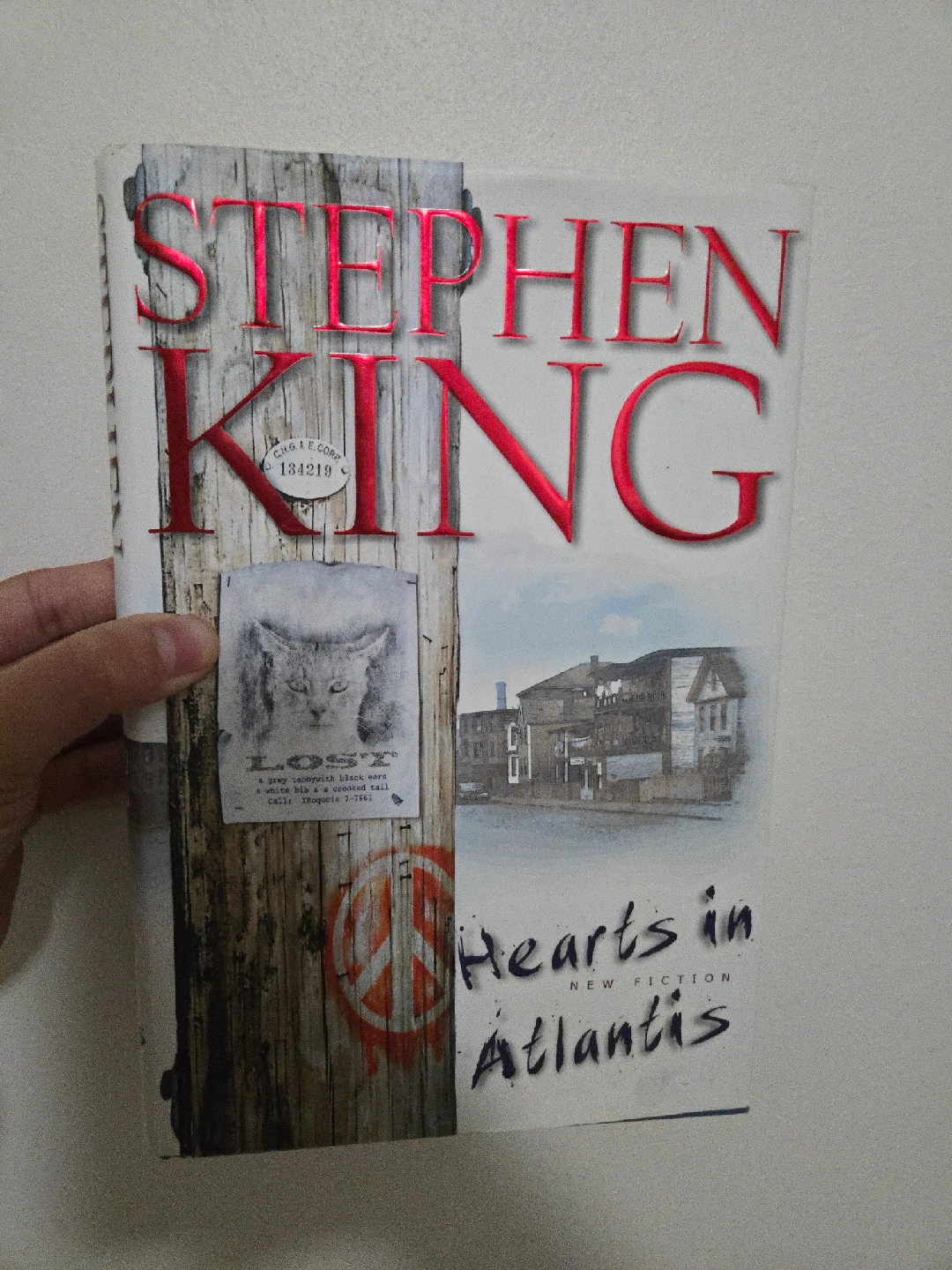 Selling a hardcover/hardcopy version of Stephen King's Hearts of Atlantis. a great read coming from a smoke free, pet free home. $5. Cash only, please